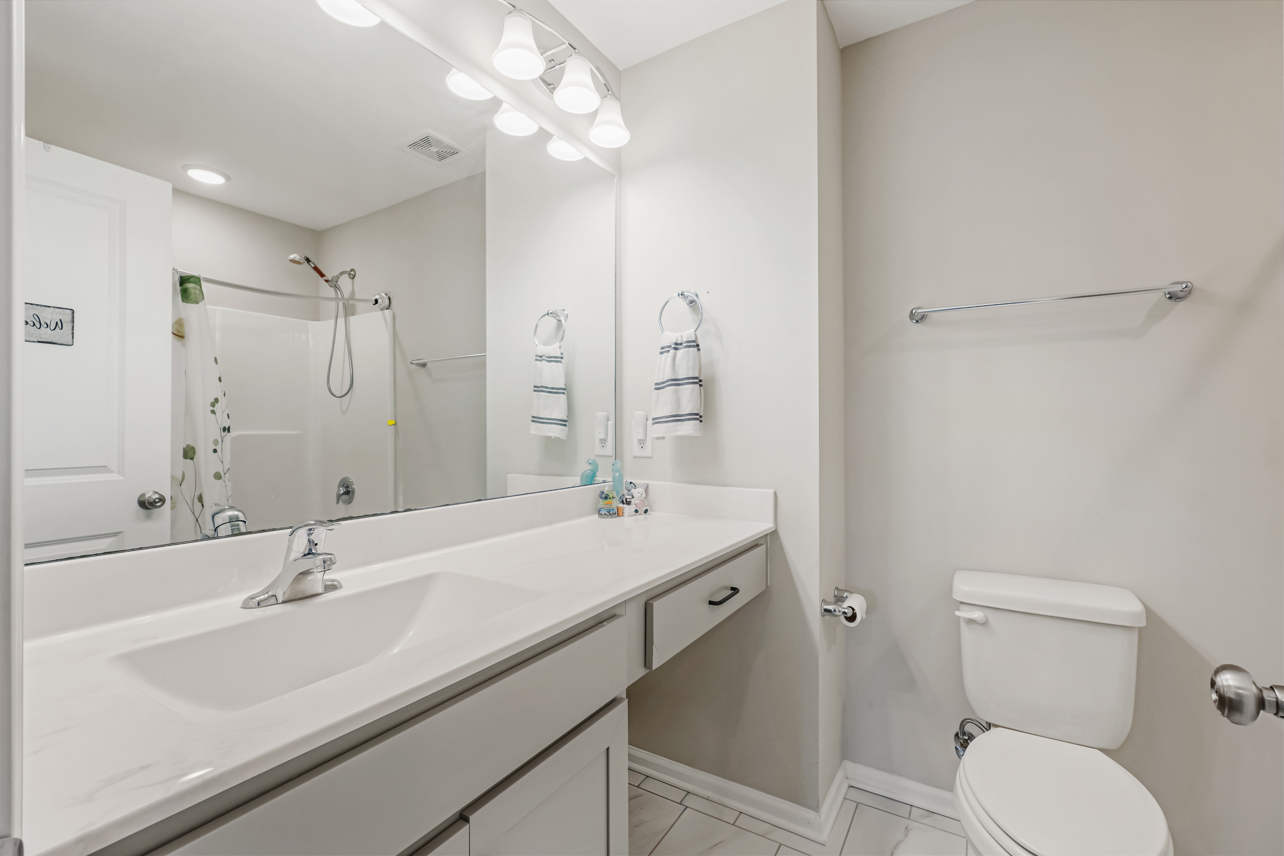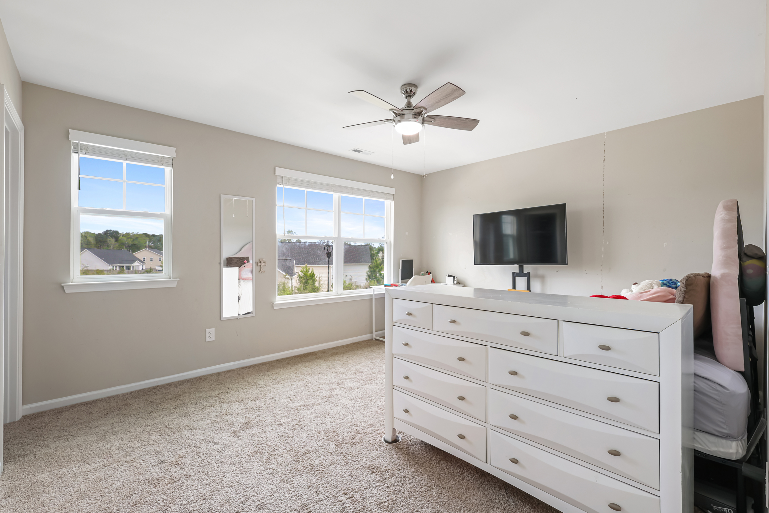 Set within a socially active neighborhood where neighbors gather and enjoy shared amenities, this two-story home offers a thoughtful design with 4 bedrooms and 3 full bathrooms. Just off the foyer, a first-floor guest bedroom provides flexibility for visitors, a home office, or a private workspace. A full bathroom is located down the adjacent hallway.