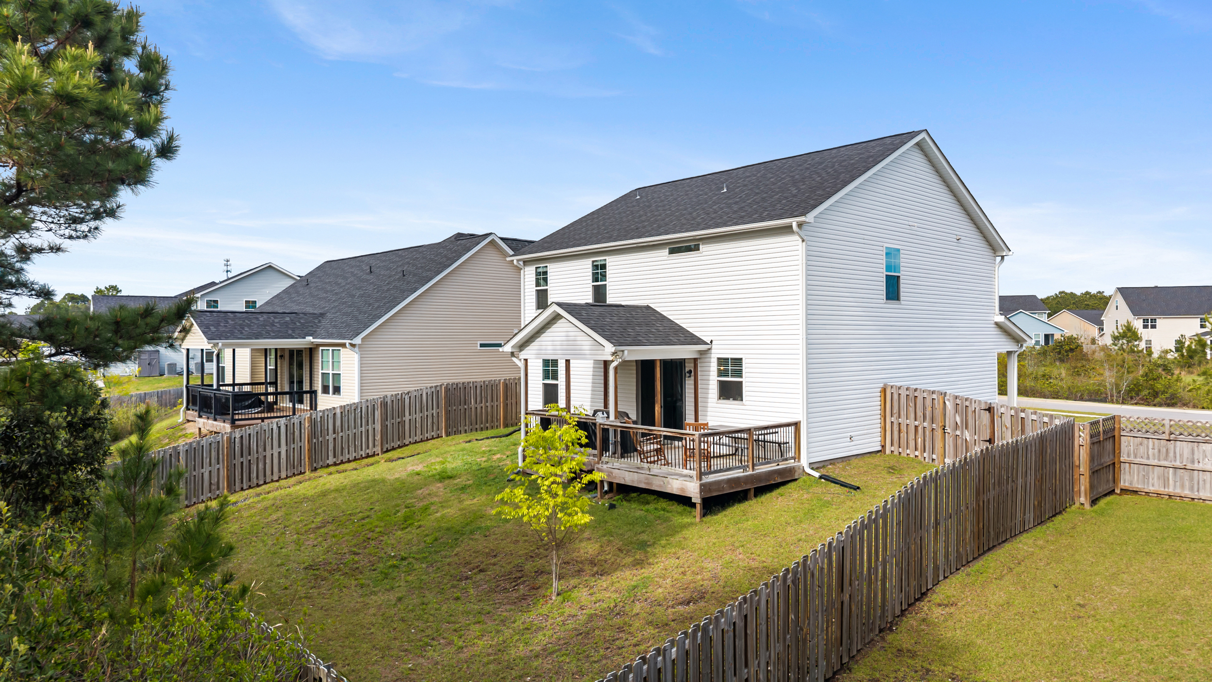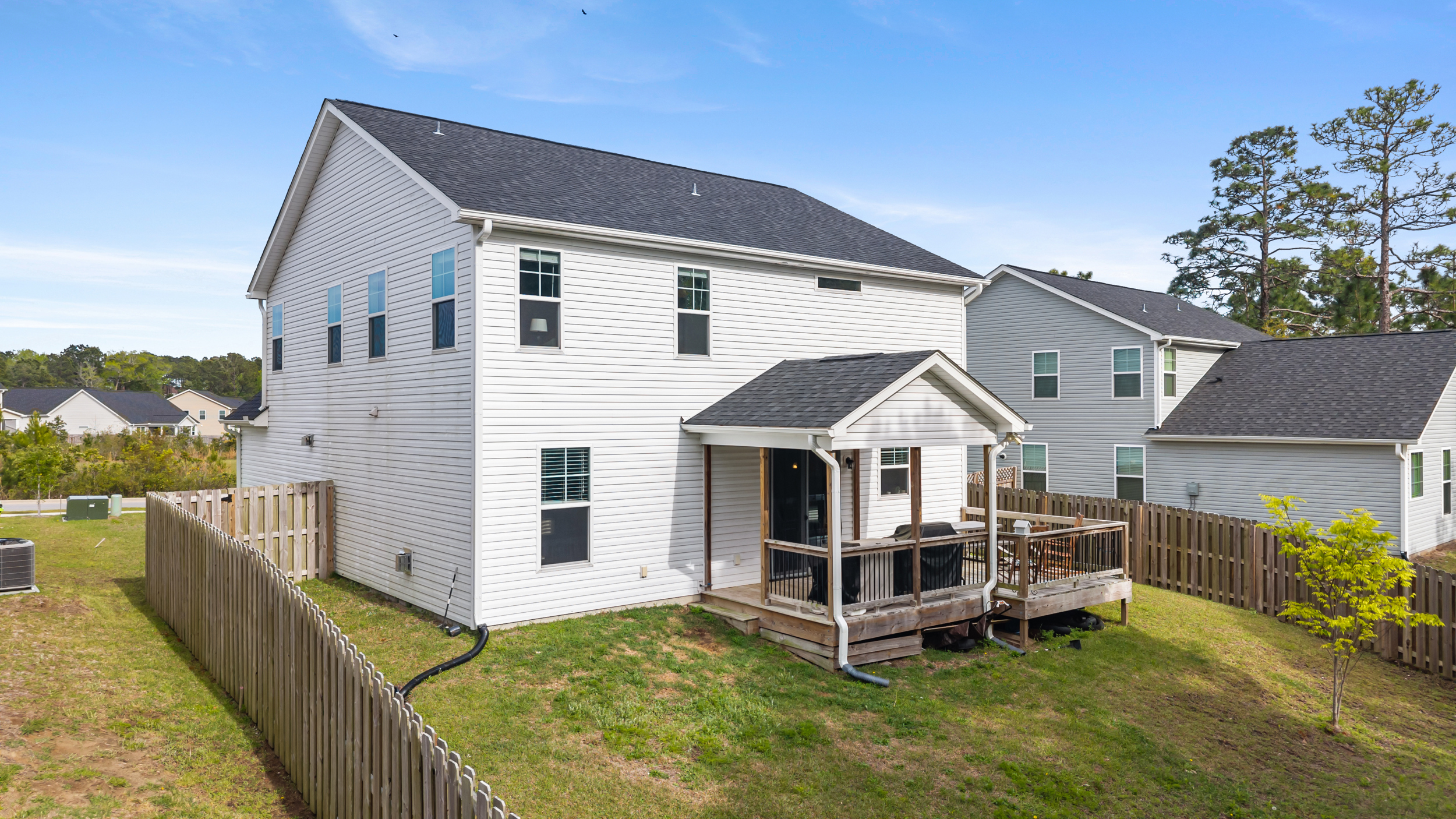 Outdoor living is just as inviting. A sliding door from the dining area opens to a covered deck overlooking a fenced back yard that backs up to a wooded area, creating a sense of privacy. With no direct rear neighbors and a natural backdrop, the back yard feels tucked away and secluded. The deck also includes an attached open-air section, ideal for grilling and enjoying time outside.