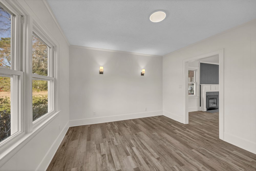 Offering 3 bedrooms, 2.5 bathrooms, and 1,617 square feet of heated living space, the layout balances charm with functionality. Luxury vinyl plank flooring runs throughout the home, tying each space together with a clean, cohesive look. The living room centers around an electric fireplace, adding warmth and visual interest without the upkeep.