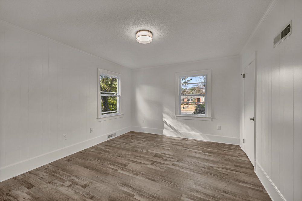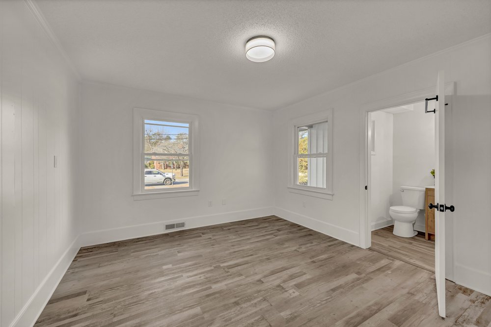 The redesigned kitchen features Shaker-style cabinetry, stainless steel appliances, and leathered granite countertops that add texture and durability while keeping the space refined. All faucets and fixtures throughout the home are brand new, and new windows improve both efficiency and natural light.