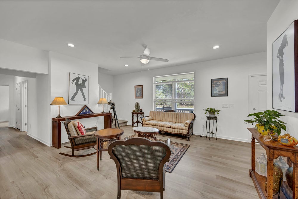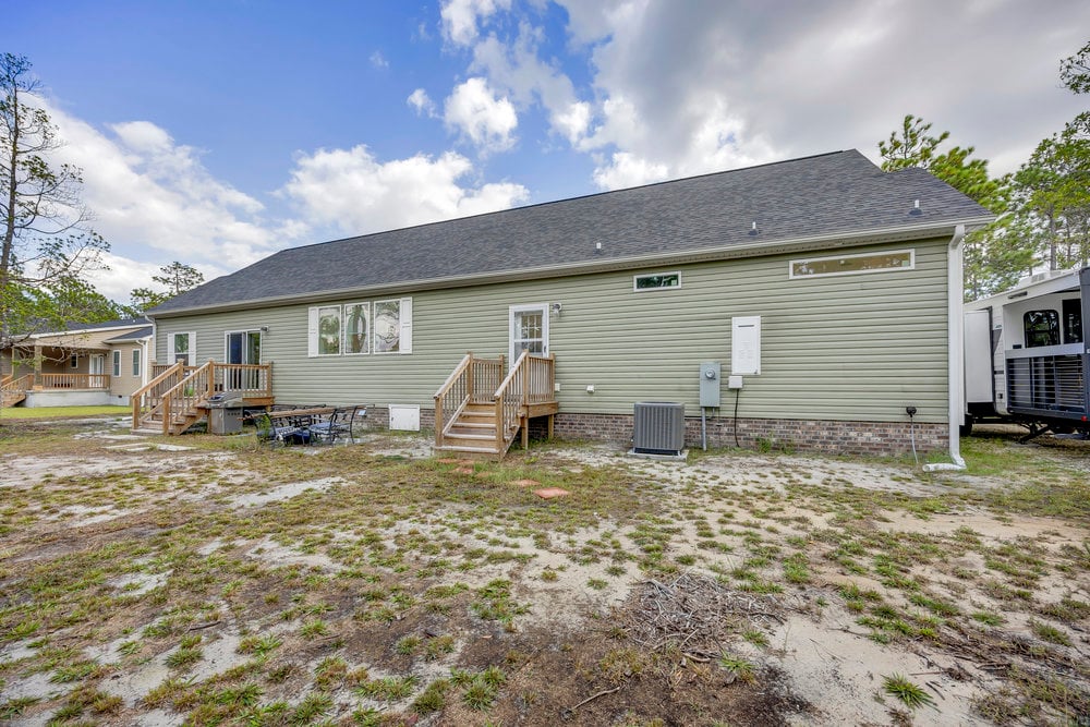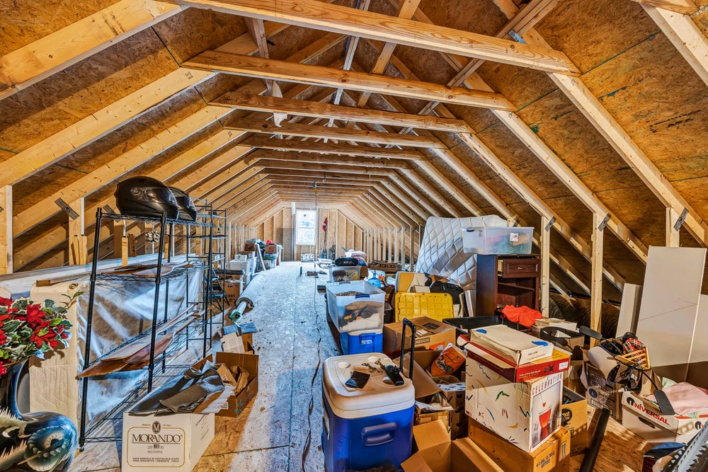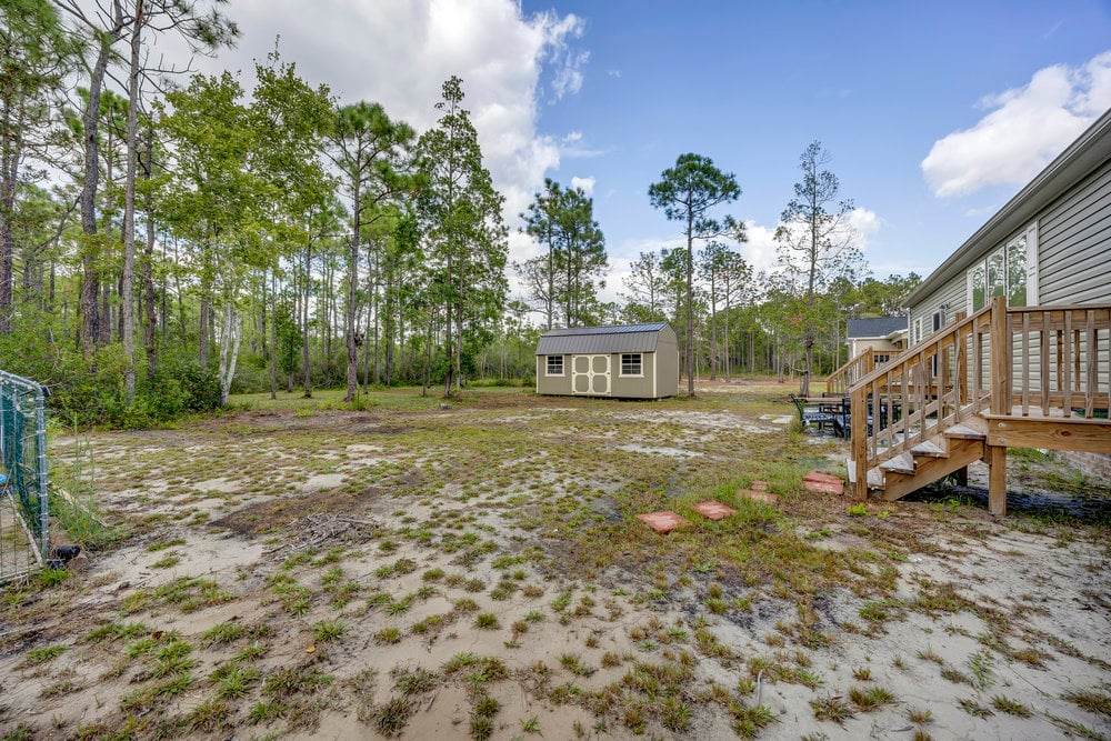 The split-bedroom layout places the primary suite on one side of the home and two guest bedrooms with a full bath on the other, balancing connection and privacy. Permanent stairs lead to an unfinished second level already plumbed for a future bathroom, giving you an easy path to expand with another bedroom, bonus room, or studio. Additional peace of mind comes from a vapor barrier and dehumidifier in the crawl space. Outside, a detached storage building keeps tools and toys neatly tucked away. With room to grow and no neighborhood rules to limit your plans, this property is a standout opportunity near everything Southport offers.