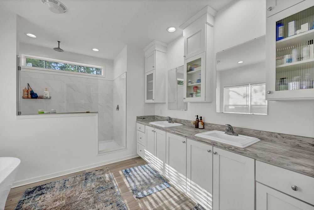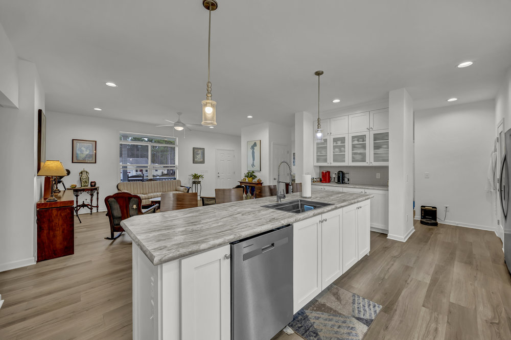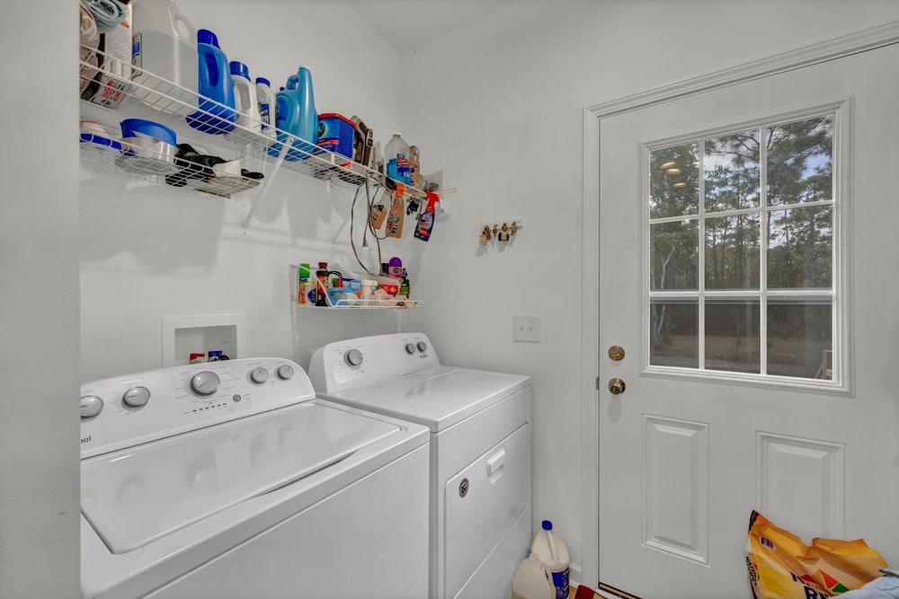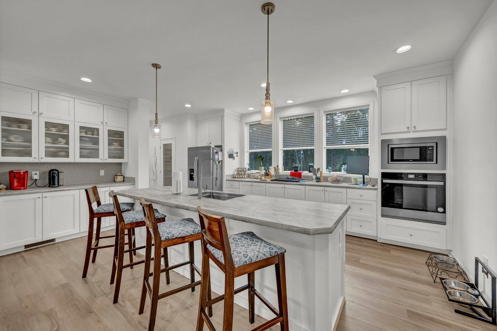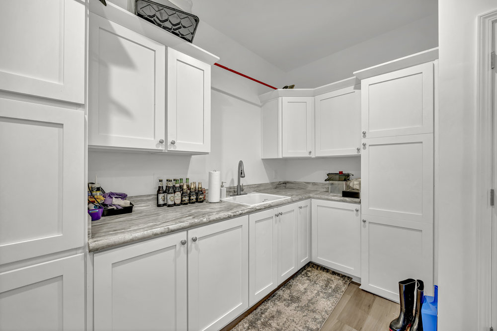 The kitchen is designed for those who like to cook and host: a large center island for prep and casual dining, a gas cooktop, a wall oven, and plenty of counter and cabinet space to keep everything organized. Just off the living area, the laundry room adds everyday convenience with a sink plus abundant counters and cabinetry—an ideal drop zone when coming in from work or enjoying the outdoors.