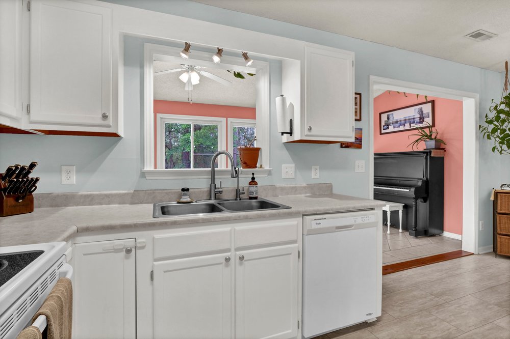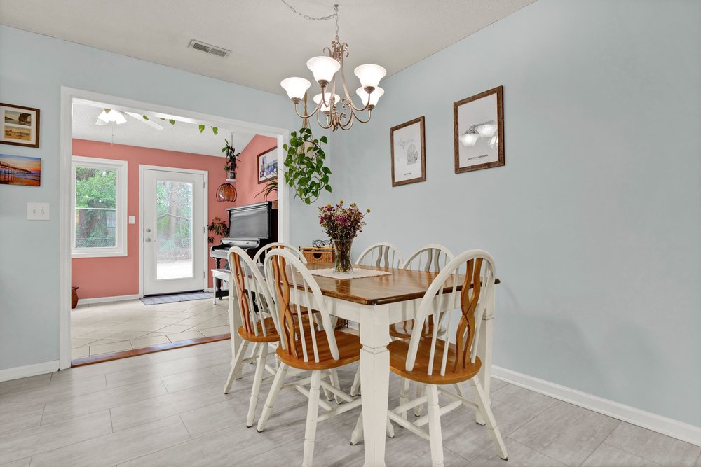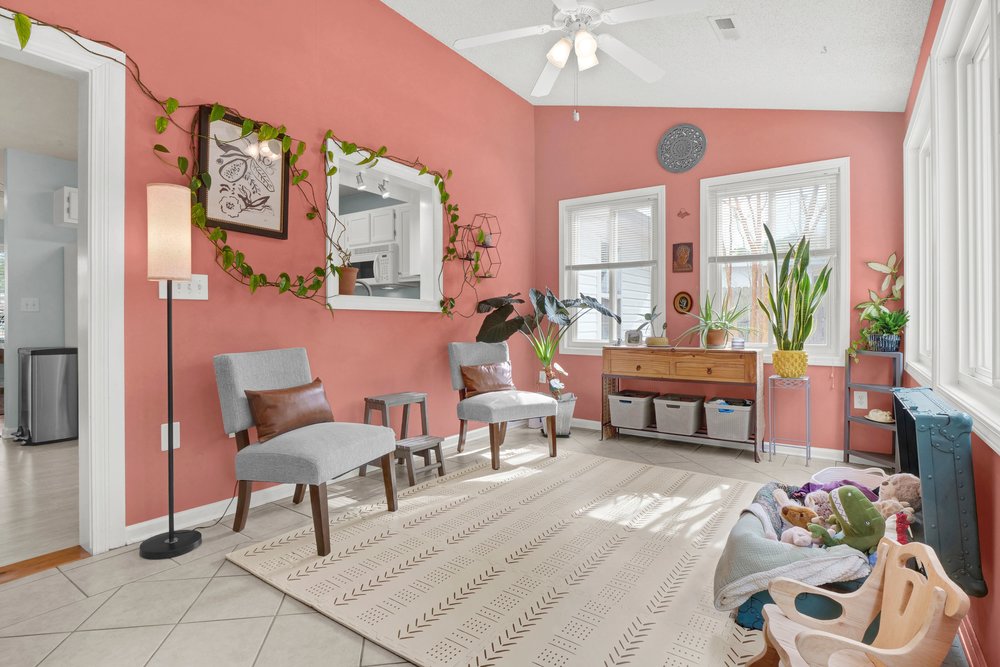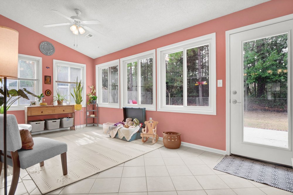 Beside the dining area is one of the home’s most appealing features: a sunroom overflowing with natural light. The room’s brightness immediately sets it apart, creating a cheerful, uplifting environment that can serve nearly any purpose. Some buyers might use it as a cozy reading nook filled with shelves and oversized pillows; others may prefer a dedicated home office, art studio, workout zone, or a hobby room where plants thrive and creativity flows. Its direct access to the rear patio also opens up possibilities for indoor-outdoor living, especially during the warmer months when mild breezes and sunny days make the entire back side of the home feel like the perfect place for a nice cookout. No matter how you envision the space, the sunroom adds personality and versatility to the home in a way that enhances everyday living without requiring a large footprint.
