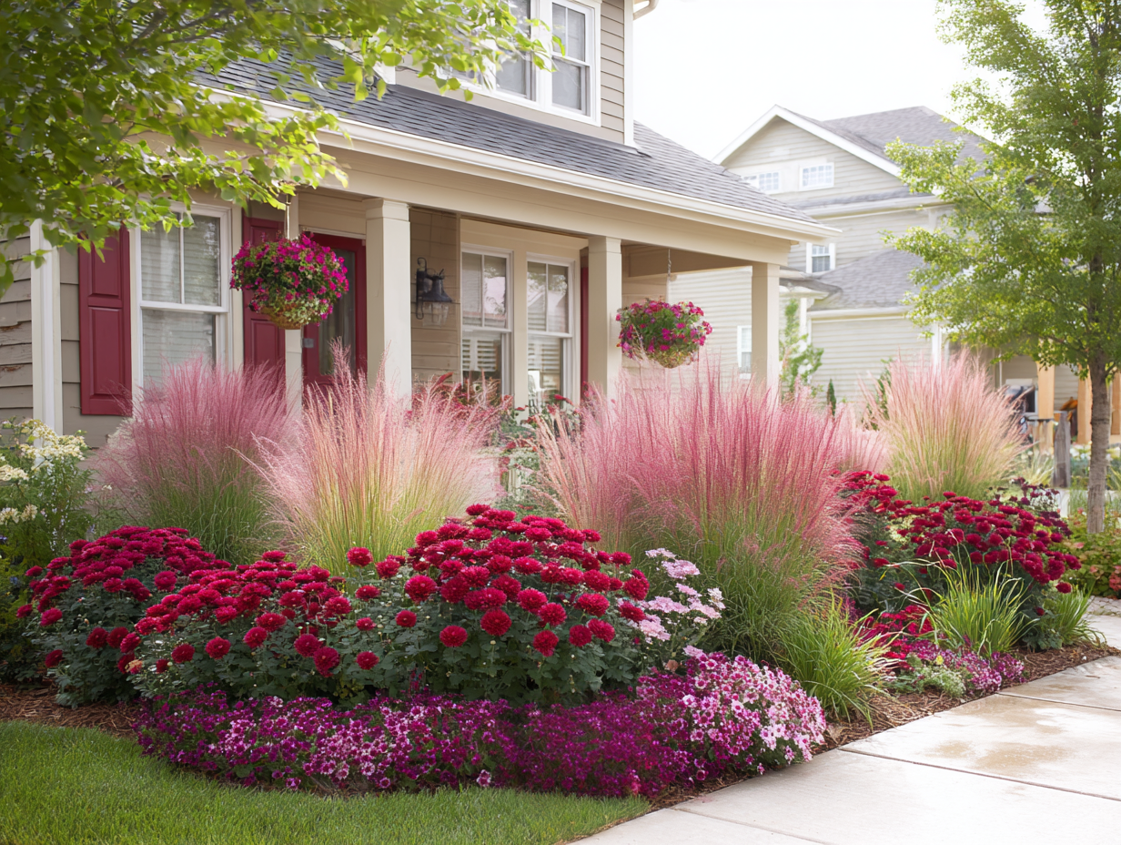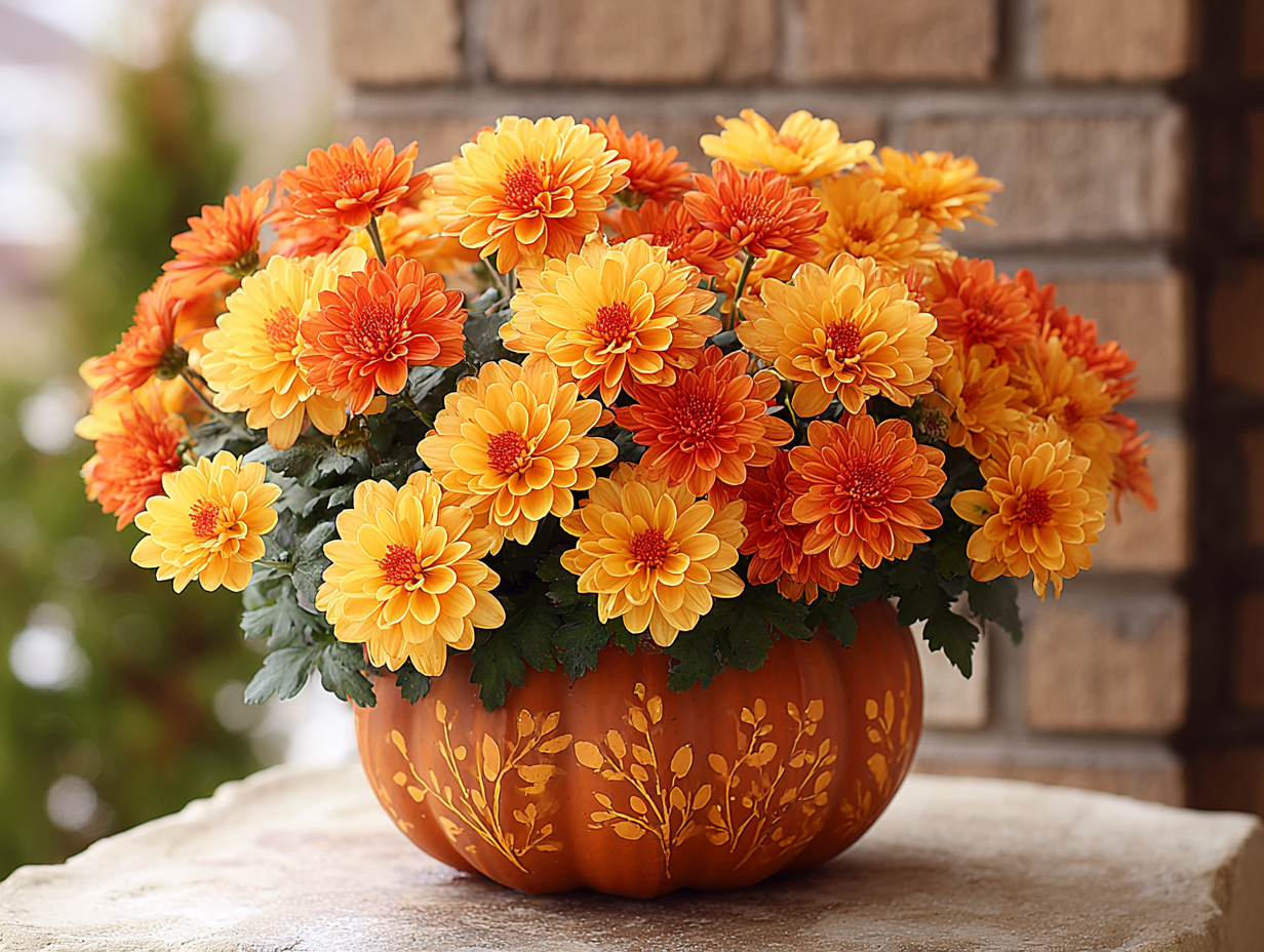 Color strategy: Choose one or two shades and repeat. For a coastal palette, think creamy white, soft apricot, or cool pinks with silvery foliage plants. For traditional fall, choose garnet, copper, or butterscotch and echo them in pumpkins and wreaths.