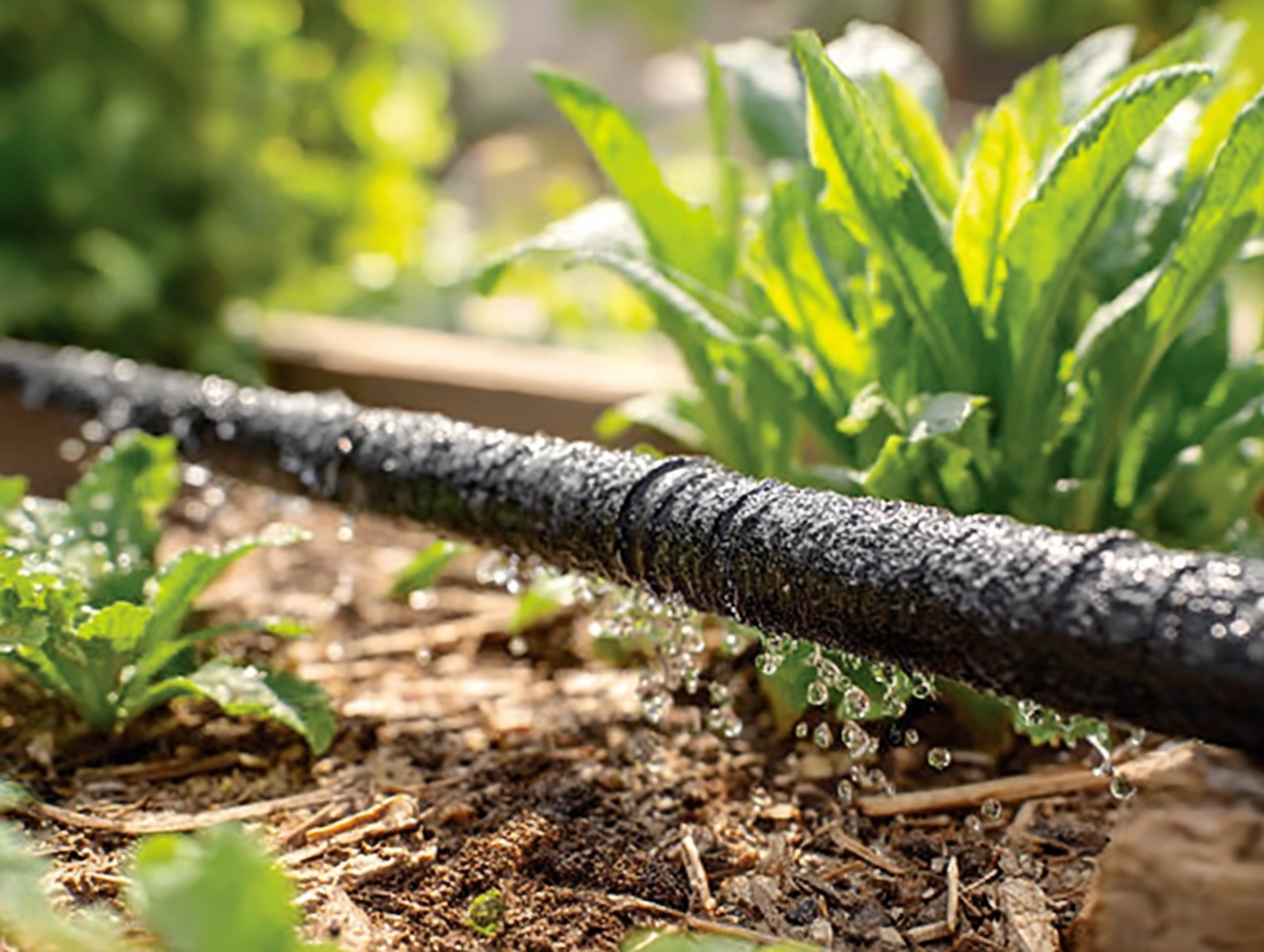 • Use drip irrigation or soaker hoses to target roots directly