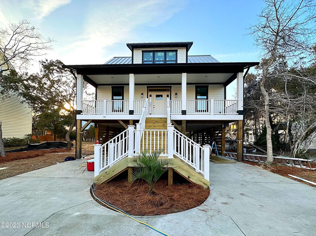 Construction is underway on this stunning, custom built home located in the highly desired Paradise Shores section of Oak Island. Presented for sale is 101 SE 71st Street, The Bogue Sound, a popular Sullivan design company plan. This is a new construction presale, photos represent renderings of plan. This gorgeous, modern beach home will host 4 Bedrooms, 3.5 bathrooms and over 2200 square feet of living space that will include top of the line finishes including LVP flooring, custom tile work,granite countertops and plenty of deck room. This home is steps away from the ocean making this the perfect primary home OR rental investment as it is large enough to accommodate the entire family. This one would be a rental money maker! Please Note: Renderings do not reflect actual selections. Many choices can still be chosen now by the new owner if you jump on this opportunity fast! Oak Island is full of town amenities making this the PERFECT vacation spot or forever home!