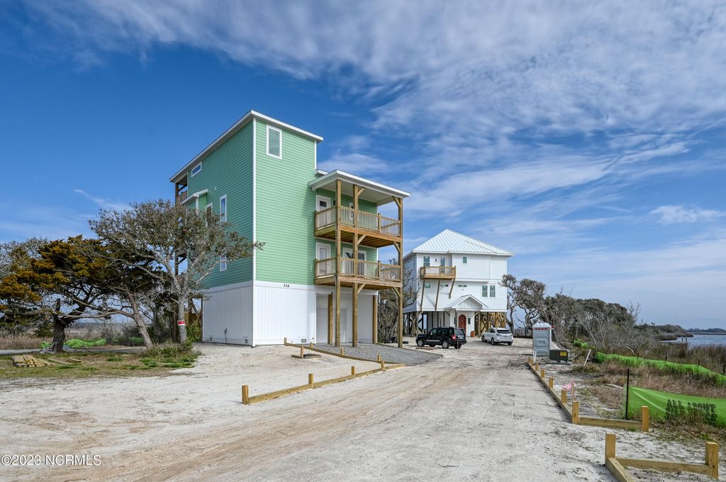 Welcome to your SOUND FRONT DREAM HOUSE, 4 bedroom, 3 1/2 bath with 2290 sprawling sq ft of new construction on pilings, with a private dock. Five minute walk across the street to a public beach access, then come home to clean off in your outdoor shower. Neighborhood is off the beaten path, in a quiet part of North Topsail Beach and has NO HOA. Be as involved or uninvolved in construction as you please, option to choose colors, finishes, appliances, along with upgrades galore to truly make this home your own! House boasts an open floor plan (Kitchen, dining and living room) with a large kitchen island (5'x7') as well as an additional breakfast bar for extra bar seats. Kitchen also has a large pantry with LVP flooring through the main living area, oak tread stairs, and carpet in the bedrooms. There is an elevator that goes to each floor, perfect for moving groceries, furniture, suitcases, and of course the weary after long beach days!! Spectacular views of the sound and marsh- enjoy watching all the wildlife Topsail has to offer from the comfort of your living room or master bedroom. Each level has decks on either side to relax and take in the views and the sounds of the ocean. Home has an abundance of closets for extra storage making it suitable for a primary residence. When you enter the home the 1st floor offers a Jr suite along with two other bedrooms with a jack and jill in between, and the laundry room. Coming up to the 2nd floor you will find the open kitchen, dining and living room as well as a half bath for guests. Travel to the 3rd floor for the master suite you've dreamed of with large master bath and a private deck. Home is within walking distance to local dining and nightlife.