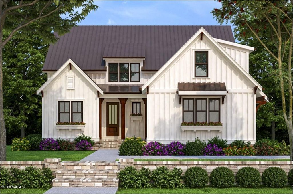 The Dahlia floor plan sits on a half acre estate home site. Covered front porch featuring metal roof accents. Entering the two-story foyer you'll find a trim package that will blow away your expectations. Home office or Guest Suite on first floor off the Foyer. Open floor plan is wonderful for entertaining or a large family! Great Room has gas fireplace with shiplap surround. Telescoping slider door opens up to the oversized Screened-In Back Porch. Kitchen has quartz counters, large island with farm sink, tile backsplash, stainless steel appliance package (refrigerator not included) custom wood cabinets with soft close doors and drawers plus under cabinet lighting standard. Dining nook right off the Kitchen completes this open 1st floor plan. Large walk in Pantry has perfect area for either a coffee or wine bar! 1st Floor Master Suite. Master Bath with dual sink vanity, custom tile shower and large WIC with wood shelving. 2nd Floor has 2 additional bedrooms, 2 full bathroom and a Bonus Room. Walk in mudroom and laundry off of main living space. Covered front porch, screened-in back porch, sod & irrigation on front, sides and back yard with separate well for irrigation only. Located only 7 minutes from Topsail Island and Surf City Beaches. Topsail Schools. Crown Pointe includes double sidewalks, pool & clubhouse plus dock, gazebo and day-dock for boating. No cookie cutter details in this custom waterfront community!