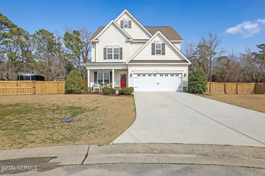 This beautiful, 4 bedroom home is located on a spacious 0.38-acre, cul-de-sac lot in the heart of Hampstead. Within 5 min of US-17 and shopping conveniences including groceries, retail stores, restaurants, gas stations, and the future Starbucks location! Kiwanis park and North Topsail Elementary School are within a 0.5 mile proximity to the neighborhood as well. For salt water enthusiasts, the public boat ramp at the Sloop Point Marina is just 2.5 miles from the property! This home has been upgraded with KitchenAid and Bosch appliances. A propane gas line was run during construction to the oven to allow for a gas cook top and combination convection oven. The KitchenAid microwave on the wall is also a convection oven. For those that love to cook and entertain this is a perfect functional space for your next gathering! The original flooring and carpets were removed and upgraded to LVP flooring throughout the first two stories as well as a soft carpet on the third story bonus area. Additional upgrades for this home include Norman composite shutters, new fixtures and trim, zoned irrigation system, and new lighting throughout the main living spaces. The exterior of the property is fully fenced (plus electric invisible dog fence) with a double gate to house any boat or RV storage needs. The interior of this home has been freshly painted with Duration brand Sherwin Williams paint giving this home a like-new feel and turnkey for any buyers that desire to relocate to this vibrant community. The open concept, private office spaces, and spacious bedrooms are exactly what you are looking to enjoy in your next home! The third floor permitted addition was completed in summer of 2022 along with 2 new HVAC and furnace systems. Don't miss your chance to view this beautiful home and make it your own.