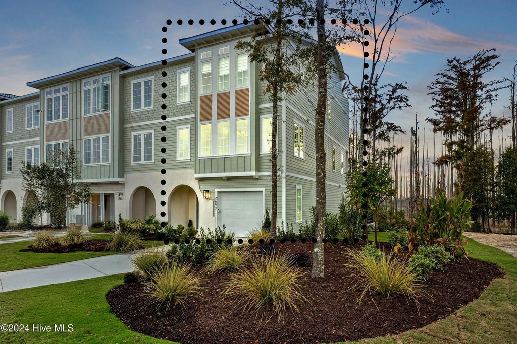 Discover unparalleled luxury at Sunset Towns, located in the waterfront community of Sunset Reach. These riverfront townhomes, crafted by Copper Builders, offer stunning views of the Northeast Cape Fear River, just 10 minutes from downtown Wilmington by boat or car. Upon entering this end unit, you'll experience modern elegance with modem bronze light and plumbing fixtures throughout, wide plank laminate flooring in all living areas and hallways, crown molding in the main living areas and solidcore doors on all bedrooms. The first floor features a private guest suite with walkout patio and luxurious bath with a fully tiled walk-in shower.. Ascend to the main living area to find an expansive, open layout with great room, kitchen, dining area, study, and half-bath. Bi-parting glass doors lead to a covered Trex deck, perfect for seamless indoor-outdoor entertaining. The kitchen is a culinary dream, equipped with premium appliances including a sleek gas oven with hood, under cabinet microwave drawer and matching refrigerator. Its centerpiece is a spacious stained center island complemented by elegant gray perimeter cabinets, all crowned with luxurious quartz countertops to match the home's ''driftwood'' décor. On the third floor, wake up to breathtaking views in your primary suite, featuring a private deck and a spa-like bath. This floor also includes two additional bedrooms, a bath, and laundry room. The fourth floor reveals the crown jewel of this home"”a private rooftop terrace with an outdoor kitchen, pergola, half-bath, and conditioned storage. Here, you can enjoy stunning sunsets, marking the perfect end to your day. For added convenience, an elevator serves all levels for easy living. Residents will enjoy a variety of planned amenities, including a lakeside pool and clubhouse, Pickleball court, trails, and convenient kayak and paddleboard launches on both the protected lake and riverfront marina. Boat slips with deepwater access are also available for purchase Contact our team today to explore the full list of available plans and options. Townhomes are under construction. Virtual renderings shown for illustrative purposes. Options and completion dates subject to change without notice.