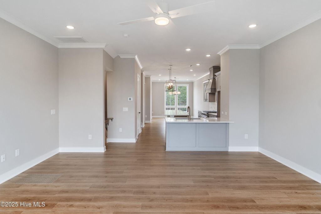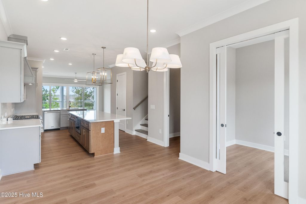 Enjoy this luxury townhome in one of the area's fastest growing communities, Sunset Reach. This waterfront townhome by award-winning Copper Builders offers serene views of the Northeast Cape Fear River and is a short 10-minute drive or boat ride from downtown Wilmington. Upon entering this luxury townhome, you'll experience modern elegance throughout, wide plank laminate flooring in all living areas and hallways, crown molding in the main living areas and solid core doors. The first floor features a private guest suite with walkout patio and luxurious bath with a fully tiled walk-in shower. Ascend to the main living area via the wood tread stairs to find an open layout with great room, kitchen, dining area, study, and half-bath. Bi-parting sliders lead to a covered deck, perfect for seamless indoor-outdoor entertaining. Here, you can savor stunning sunsets, providing the perfect conclusion to your day. The kitchen is a culinary dream, equipped with premium appliances including a sleek gas oven with hood and under cabinet microwave drawer. Its centerpiece is a spacious center island complemented by elegant gray perimeter cabinets, all crowned with luxurious quartz countertops. On the third floor, awaken to breathtaking views from your primary suite, which includes a private deck and a spa-like bath. This floor also offers two additional bedrooms, a bath, and a laundry room. Enjoy maintenance-free living that gives you more time to take advantage of everything Sunset Reach has to offer. Step outside and stroll or bike the scenic trails that wind around the 12-acre private lake. Launch your kayak for a peaceful paddle, or take your boat from the brand-new marina and be in downtown Wilmington in less than 10 minutes. Pickleball court is ready for play, and a pool with clubhouse and fitness room are coming soon! Sunset Reach is ready to welcome you home! Some images in the listing have been virtually staged to help show the intended use and true potential of the space.