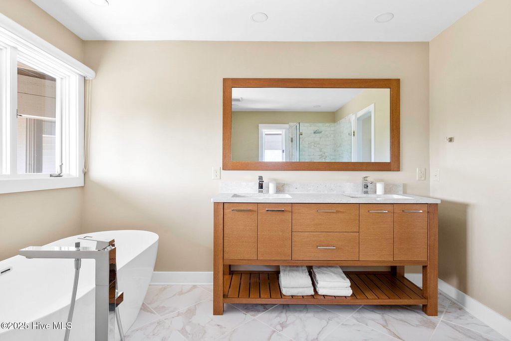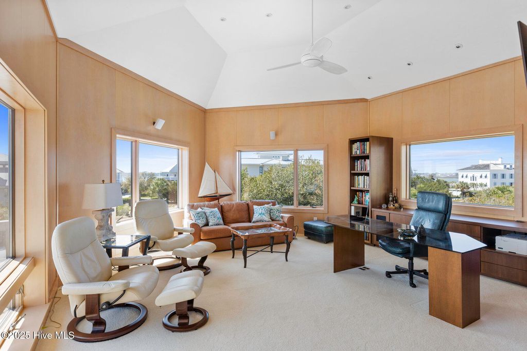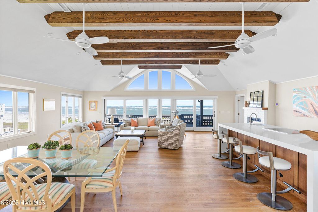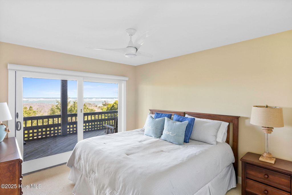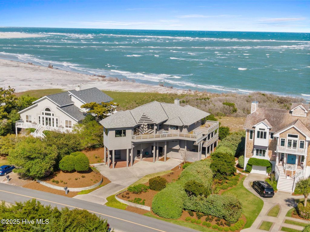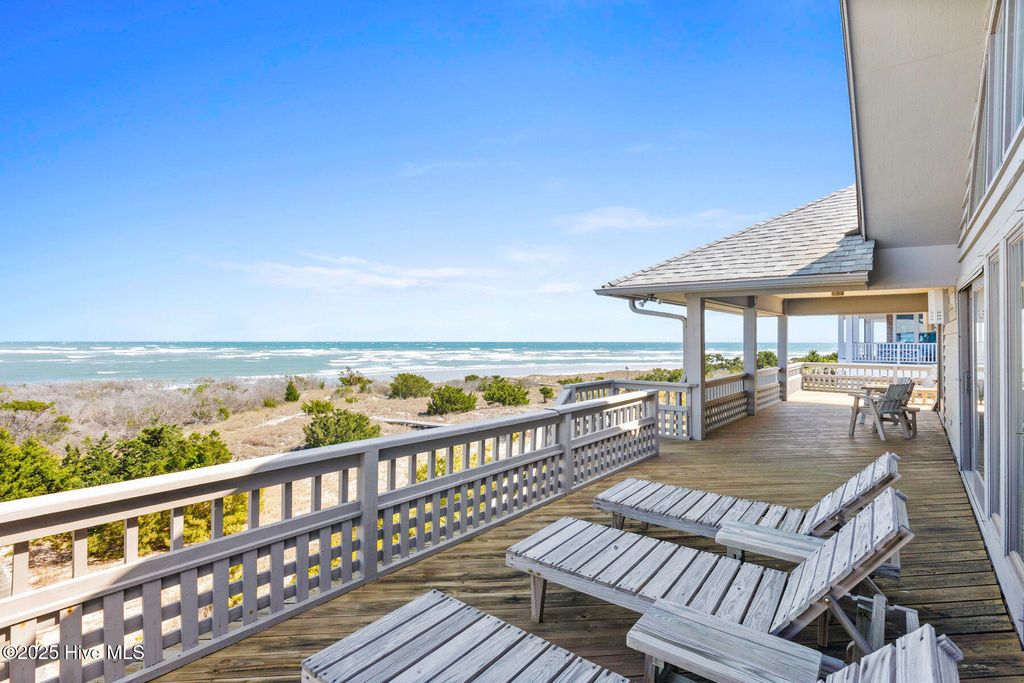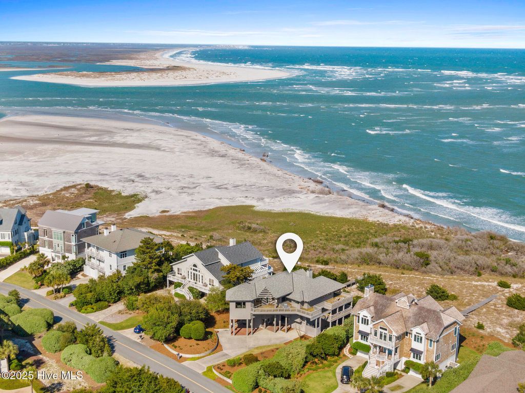 Discover the beauty, unparalleled privacy and tranquility of Figure Eight Island, a private island located just across the Intracoastal Waterway from Wilmington, NC. Enjoy exceptional ocean and inlet views from this meticulously maintained and fully renovated 4-bedroom, 4-bath home with large covered and uncovered decks, ideally situated on the pristine shores of Figure Eight Island. Designed with a reverse floor plan, the property features a stunning kitchen, dining, and living area, complete with large windows that showcase the island's expansive beauty. The master bedroom, which includes an ensuite bath and a large office/den space, are also located on this upper level. The first living level offers a den, a secondary master suite with an ensuite bath, two additional bedrooms and bathrooms, and a laundry room. This home is sold furnished with some exclusions and includes a Figure Eight Island Yacht Club Warrant. Figure Eight Island offers a unique opportunity to enjoy coastal living in a private community composed of single family homes. Figure Eight Island Yacht Club offers a restaurant, bar, tennis, pool, fitness classes, and marina. Access to the island is via a gated bridge over the Intracoastal Waterway, allowing you to leave the crowds behind and enjoy over 5 miles of beautiful white sand beach.