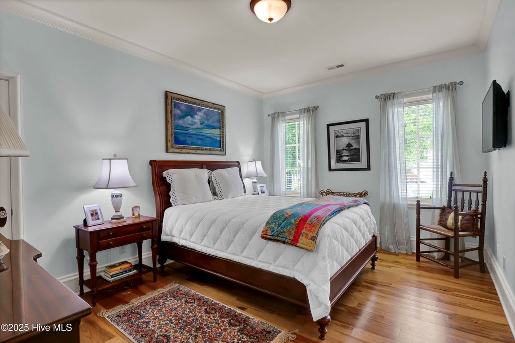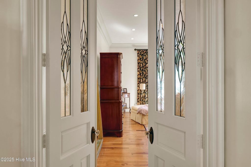 Bel Arbor is one of Wilmington's best-kept secrets "” a secluded, luxury community tucked away just minutes from Wrightsville Beach, Airlie Gardens, and premier Intracoastal Waterway dining. Enjoy the ease of coastal living"”just a walk or short bike ride to beach days, waterfront bites, and local favorites. Enjoy a peaceful atmosphere where coastal breezes and the scent of salt air are part of everyday life outside your door. Come experience this beautifully crafted residence which exudes timeless elegance and thoughtful design. Step into a grand foyer featuring a sweeping staircase that sets the tone for the sophisticated design throughout. Hickory floors, extensive crown and trim molding, and solid, one-of-a-kind custom doors add richness and craftsmanship to every room. The custom kitchen is a chef's dream, complete with a spacious island, double ovens, a butler's pantry, and top-tier finishes. Enjoy effortless entertaining with built-in surround sound and seamless indoor-outdoor living that extends to a charming side porch"”perfect for unwinding or hosting intimate gatherings. The massive master suite is a true retreat, highlighted by an oversized walk-in closet and a spa-inspired bathroom. The second level features 3 en suite bedrooms and a (18.6x17.2) living area which can be used as a family room, game room, or a fifth bedroom. Additional luxury touches include a 3-car garage, gas generator for peace of mind, and a thoughtfully designed floor plan that balances comfort with elegance.