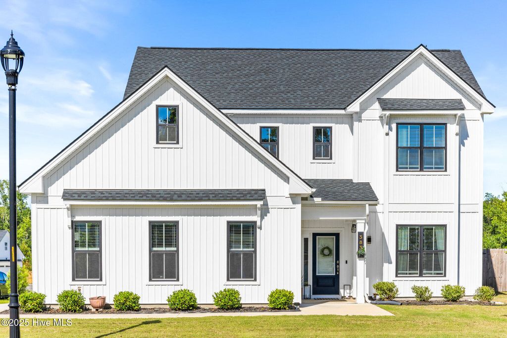 THIS IS A MUST SEE!!! Welcome to this beautifully crafted 3-bedroom, 2.5-bath home built in 2023, ideally located in the heart of Hampstead and surrounded by three amazing golf courses. With sleek modern finishes and a thoughtfully designed layout, this low-maintenance home offers the perfect blend of style, space, and functionality. Inside, you'll find an open-concept living area with a cozy gas fireplace, a gourmet kitchen featuring a gas stovetop, and high-end finishes throughout. All three spacious bedrooms are located upstairs, along with two full baths and a convenient half bath on the main level"”perfect for entertaining. Enjoy outdoor living in the expansive backyard, complete with a patio and a built-in gas hookup"”ideal for an outdoor kitchen setup. A large storage shed provides extra space, and the 2-car garage offers plenty of room for vehicles and tools. Need more storage or creative space? This home features a ton of usable attic space, ready for your seasonal items, hobby area, or future expansion. Don't miss this opportunity to own a stylish, spacious home in one of Hampstead's most desirable locations. Schedule your private showing today!