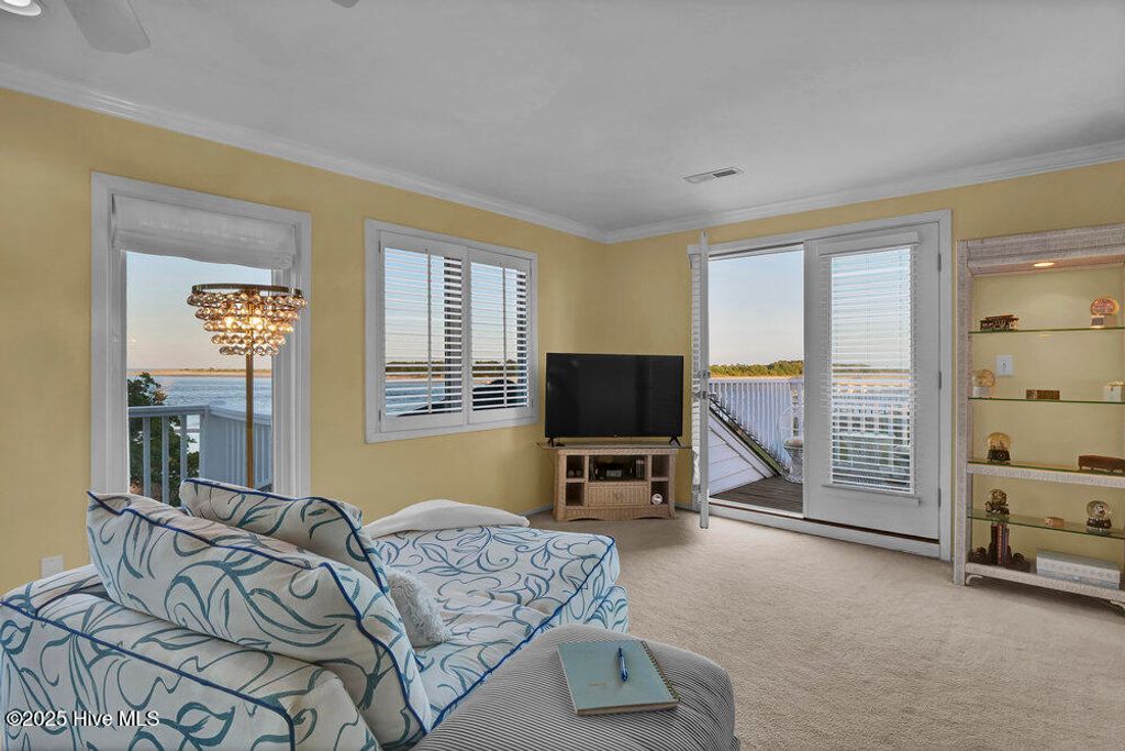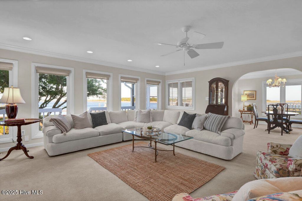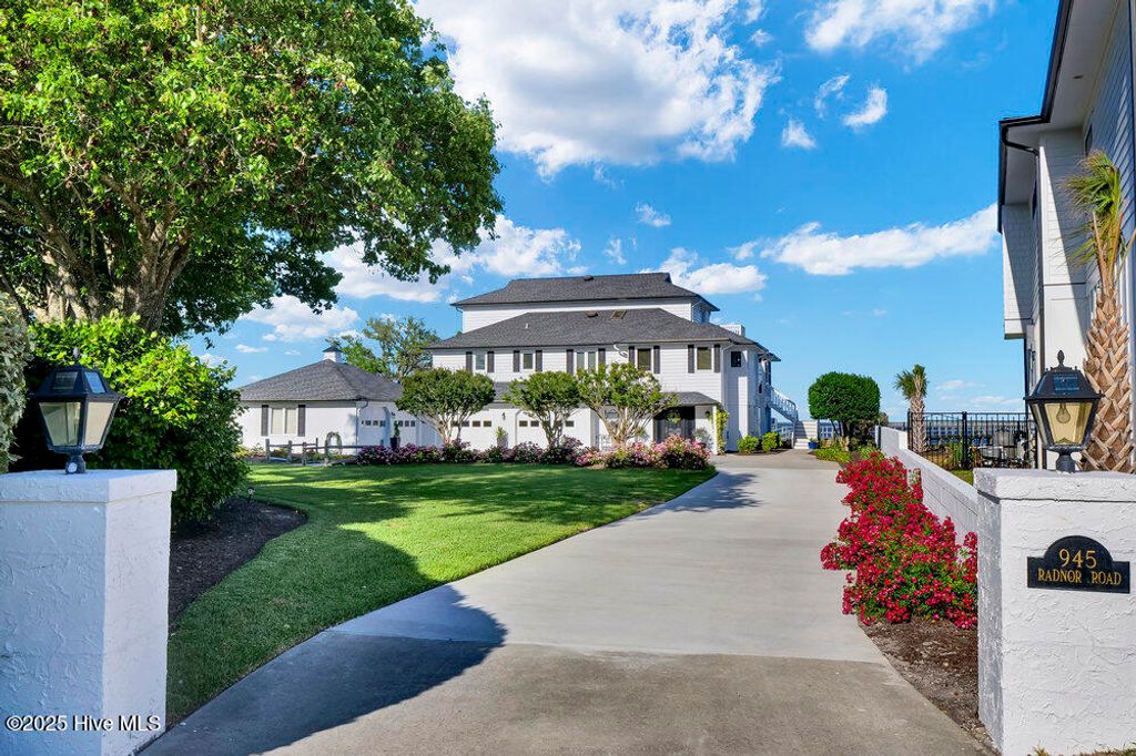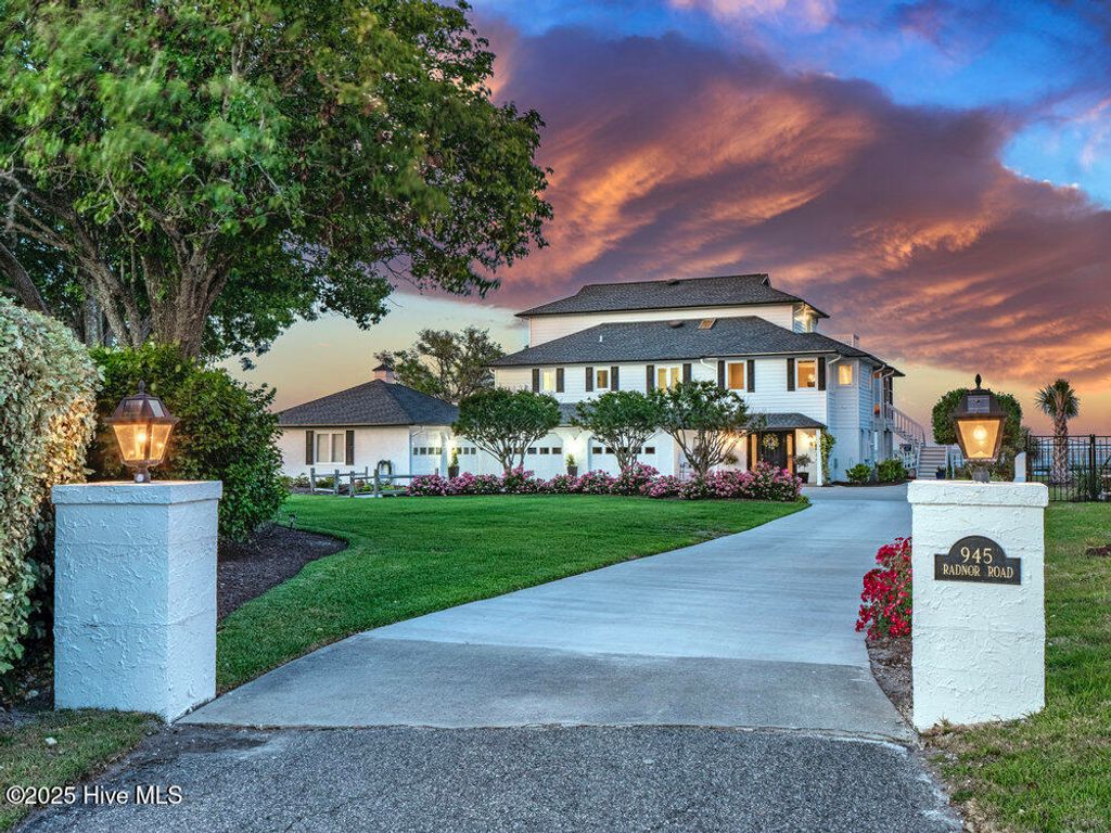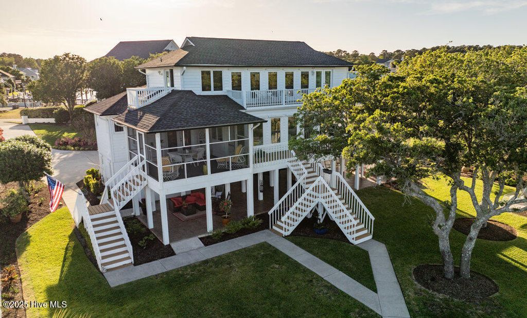 Step into the pages of a magazine with this extraordinary coastal dream home, perfectly positioned on the Intracoastal Waterway. Tucked away at the end of a quiet cul-de-sac on a sprawling 3+ acre private lot. This property offers unmatched panoramic water views and has pilings in place to add 2 boat lifts and floating dock. At 3,166 square feet, this impeccably maintained residence features 3 spacious bedrooms, each with its own en-suite bathroom, and 3.5 baths. The home's thoughtful layout includes a grand ground floor with dual two-car garages, a welcoming foyer, and a guest suite with private bath. Just outside, a massive covered patio invites effortless entertainment. The main living space on the second floor is a showstopper, with an open-concept design that highlights the breathtaking water views from every angle. The kitchen includes a charming breakfast nook and overlooks the formal dining area, which seamlessly flows into a spectacular living room with built-ins, a gas log fireplace, and floor-to-ceiling windows that frame the water like art. Step outside onto the screened-in porch or the expansive wrap-around deck and soak in the coastal breeze. The primary suite on this floor is a sanctuary of its own, complete with a generous walk-in closet, an en-suite bath, and private access to the deck. A large laundry room completes this level with added convenience. Ascend to the top floor, where a massive private suite awaits. This ultimate retreat offers stunning views, dual private balconies, a spa bath featuring a soaking tub and separate walk-in shower, and a walk-in closet. Outside, the lush, meticulously landscaped grounds lead to your own 400-foot private dock, complete with a waterfront gazebo outfitted with electricity, water, and fish-cleaning stations "” perfect for boating, fishing, or simply watching the sun rise over the Inlet Watch Yacht Club. Whole home generator as well. This is more than a home, it's a lifestyle. Peaceful. Private. Breathtaking.
