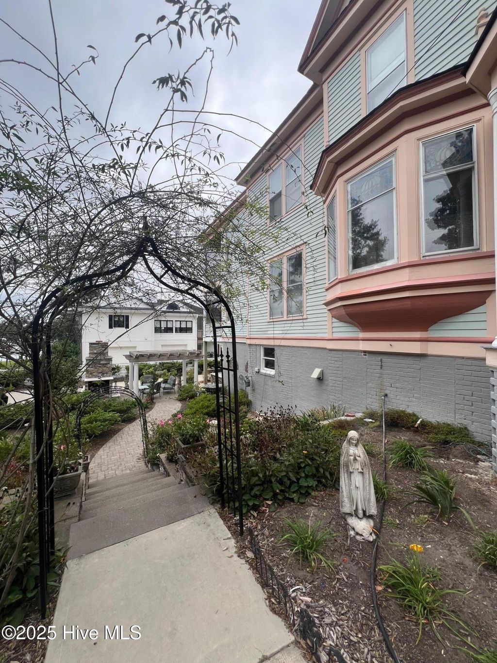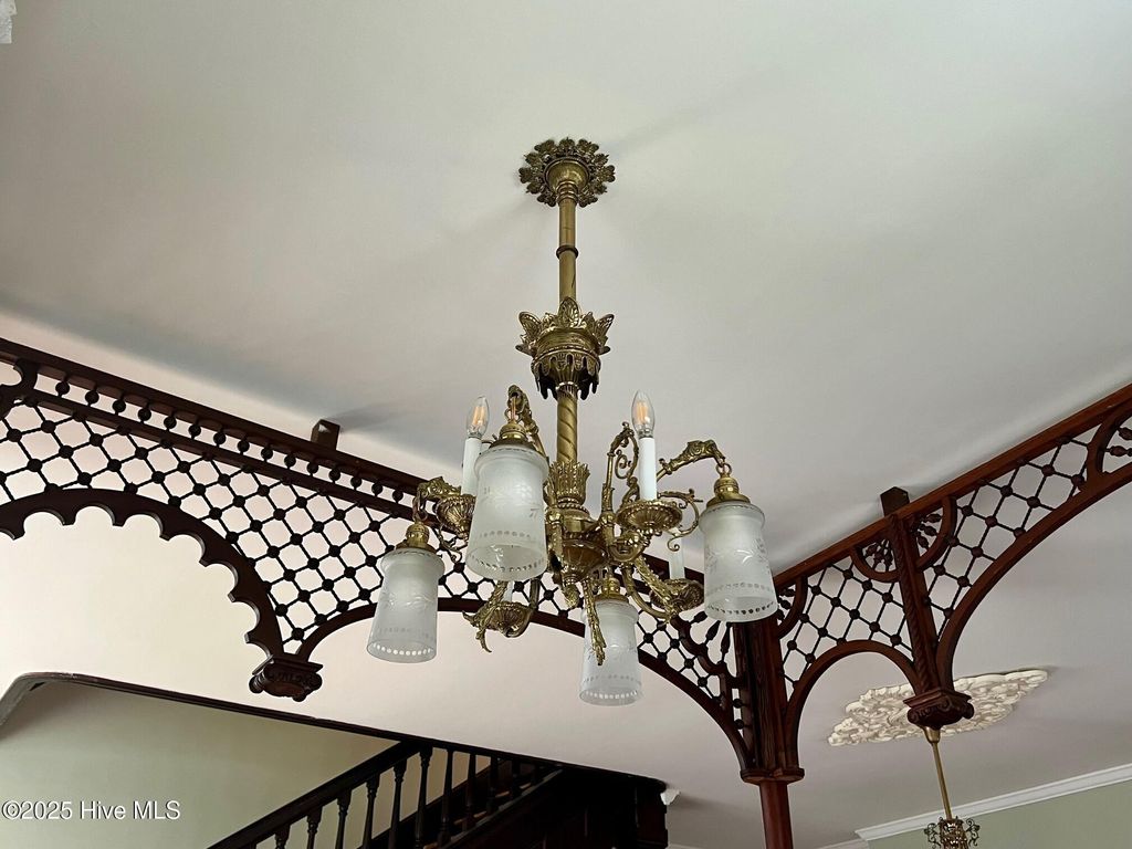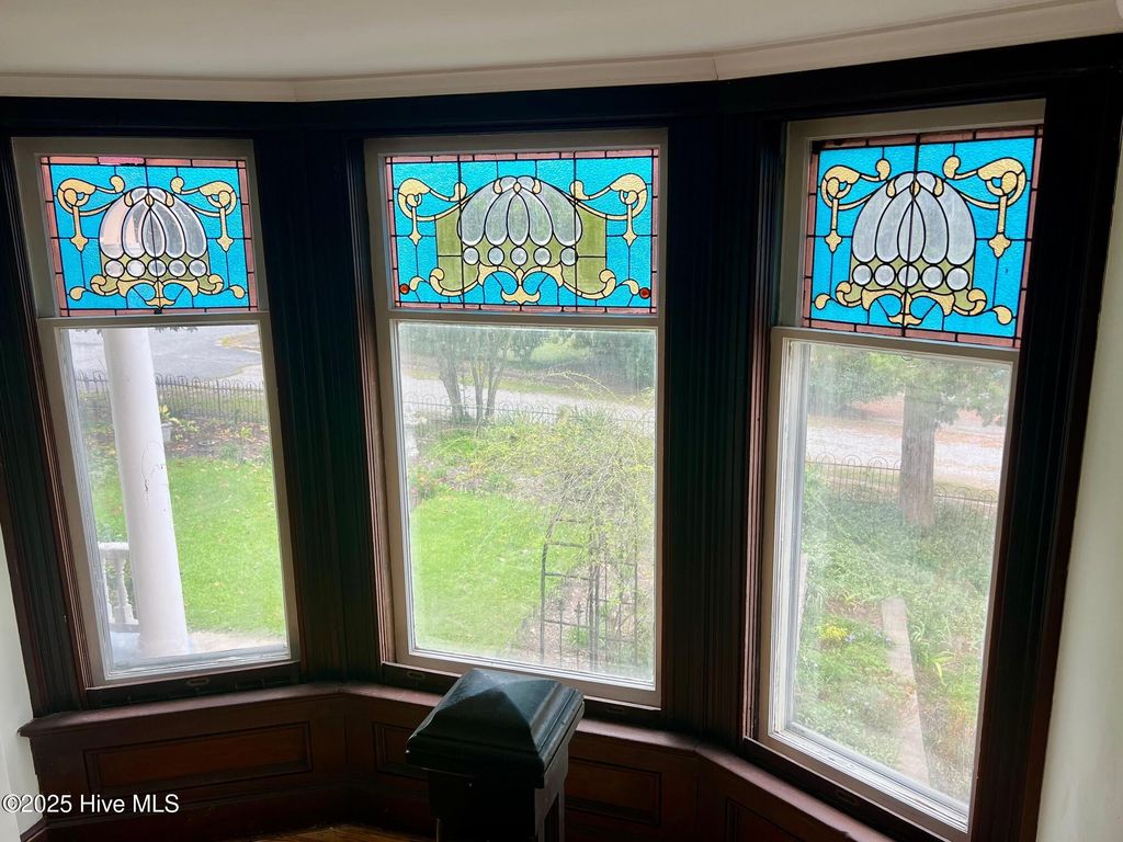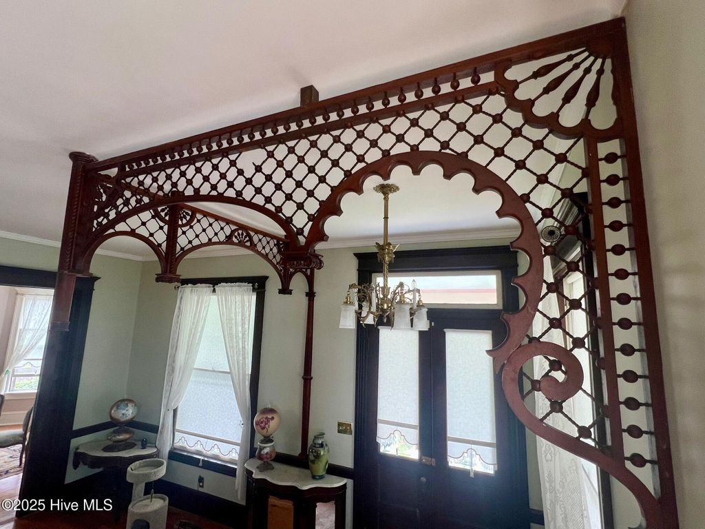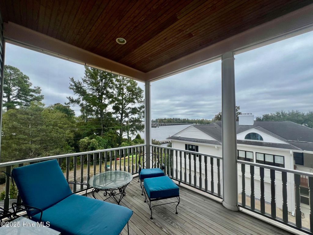 A Victorian masterpiece overlooking the Pamlico River, where timeless charm and refined modern living converge, welcome to 603 W. Main St! From the moment you pass through the original wrought iron gate, the babbling of a tiered fountain and the glow of gas lamp posts with blooming baskets set the tone. The wraparound veranda invites you to take in gorgeous water views and meticulous terraced gardens that cascade to a private outdoor kitchen, fireplace, and secluded garden retreat and one car garage. Through the front door and you are transported back in time where details that modern construction simply cannot touch abound. A grand staircase with wainscoting, wide landing, and stained glass windows will take your breath away. To your right you'll find the sunny formal living room that is adjacent to the stately formal dining room with period lighting, bronze hardware, and built-ins, no detail was overlooked. A butler's pantry with deep sink, marble countertops, a second refrigerator and glass front cabinets flows into the kitchen where you can pull up a seat at one of the double kitchen islands or prepare a meal in what is truly a cook's dream, featuring 6 burner JennAir cooktop w griddle, double Whirlpool ovens with warming drawer and microwave, concrete apron-front sink, marble countertops, and a wet bar with wine cooler. Two double French doors open to a screened in porch off the kitchen where you have another set of stunning water views. A den off the kitchen features the fourth fireplace in the house and the second with gas log insert. Upstairs, the serene primary suite opens to a private balcony with panoramic views and includes a luxurious ensuite bath with mother-of-pearl inlaid sinks and a custom California closet. Two additional bedrooms, updated baths, and full laundry room complete the blend of history and thoughtful modern updates in both appearance and function. Don't miss your chance to live in a legacy home, with river views at every turn!