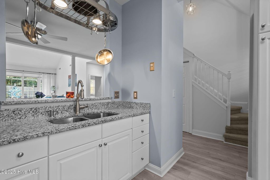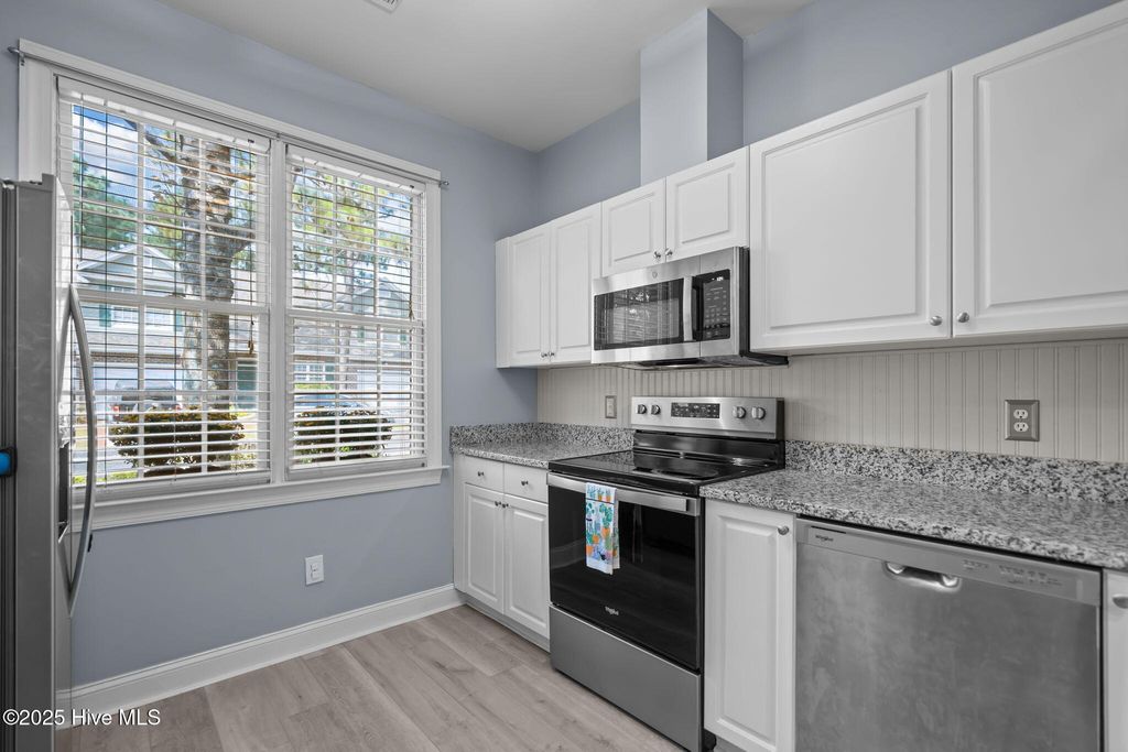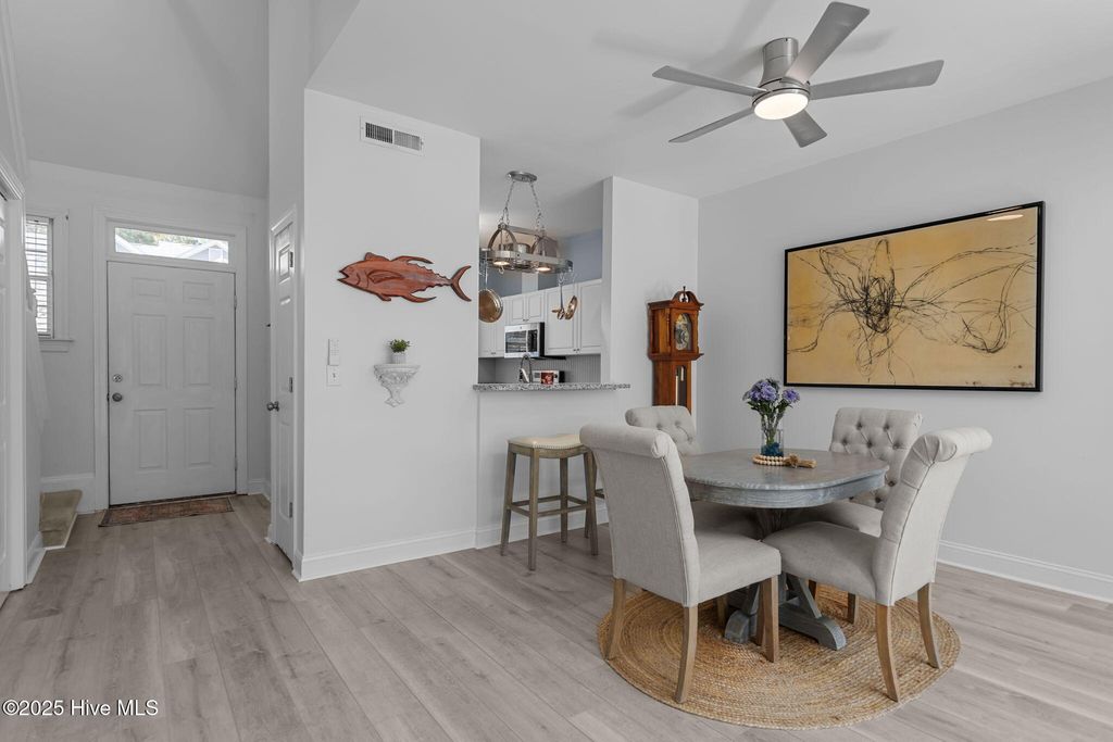 Live every day like a vacation in this beautifully updated and freshly painted 3-bedroom, 2.5-bath townhome with office and one car garage. Perfectly located in the quiet townhome community of Ashton"”just minutes from Wrightsville Beach, UNC-W, and Wilmington's best shopping and dining. This home combines coastal charm with modern updates, giving you the ideal easy lifestyle primary residence, weekend getaway, or investment property. Step inside and feel the bright, beachy vibes with soaring vaulted ceilings, skylights, and abundant natural light that fills the open-concept living space. Brand-new LVP flooring flows through the kitchen, dining, and living room creating a seamless coastal feel. The kitchen features granite countertops, new appliances, and stylish fixtures"”perfect for hosting post-beach dinners for family and friends. Your first-floor master suite offers a private retreat with a fully renovated spa-like bathroom featuring a brand new custom tile shower, double vanity with granite countertop, vessel sinks, LVP flooring, and satin nickel lighting and plumbing fixtures. Upstairs, you'll find two guest bedrooms and a versatile flexroom"”ideal for working from home or accommodating friends for a beach weekend. Step outside to one of the nicest and most spacious fenced-in backyards you'll find in a townhome, backing up to a peaceful wooded area for additional privacy. Enjoy morning coffee on the covered front porch, afternoons on the back patio, and evenings with ocean breezes that remind you why you moved here. The community pool and clubhouse is a great place to socialize. With a one car garage, private backyard, low maintenance living, and tasteful updates throughout, this home is truly ready for you to move in. Don't wait to check out this unbeatable location minutes from the sands of Wrightsville Beach or a quick bike ride or walk to UNC-W campus. Schedule a private showing today while you can and start living the coastal life you've dreamed!