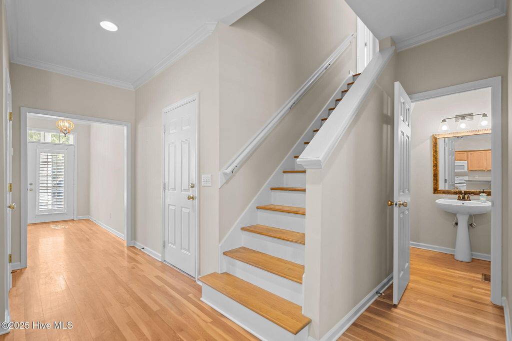 Experience luxury and affordability in this beautifully appointed townhome, located in the desirable Telfair Summit community. Nestled beside a scenic nature preserve and overlooking the Masonboro Country Club golf course at The Cape, this home offers both tranquility and convenience. A standout feature is the enclosed second-floor loft, complete with a closet, full bath, and dressing area"”ideal as a media room, game room, or potential 4th bedroom. The main level showcases hardwood flooring throughout the living areas (carpet in the primary suite) and an open-concept layout designed for both comfort and entertaining. The formal dining room connects to a spacious great room via a butler's pantry, and the fireplace adds a cozy touch. Step out onto the rear deck"”perfect for relaxing or hosting guests. Filled with natural light, this home offers a bright, airy atmosphere throughout.