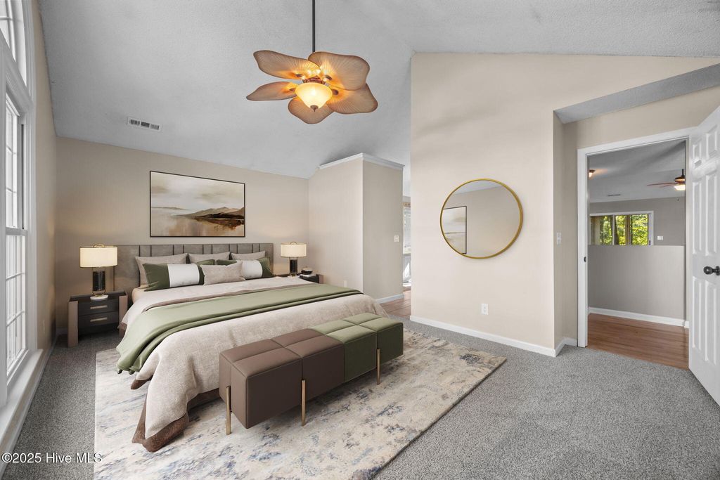 Welcome to 2805 Colonel Lamb Drive, a beautifully updated home in the sought-after Northchase community. This charming 3-bedroom, 2-bathroom single-story residence offers the perfect blend of comfort, style, and functionality. Inside, you'll find a spacious layout with vaulted ceilings and a cozy fireplace that anchors the living area. A versatile flex room provides the ideal space for a home office, playroom, or guest space. The sunroom, included in the heated square footage, creates a bright and relaxing retreat year-round. The kitchen has been refreshed with new countertops and modern tile, while both bathrooms also feature new tile flooring. Brand new carpet in the bedrooms adds warmth and comfort underfoot. Step outside to enjoy the brand-new deck, overlooking a fully fenced backyard with a storage shed"”perfect for hobbies, lawn equipment, or extra storage. The renovated garage is another standout feature, boasting finished walls and a durable epoxy-coated floor. Located in Northchase, this home comes with access to community amenities and is conveniently close to shopping, dining, and area beaches. Don't miss your opportunity to own this move-in ready gem"”schedule your showing today!