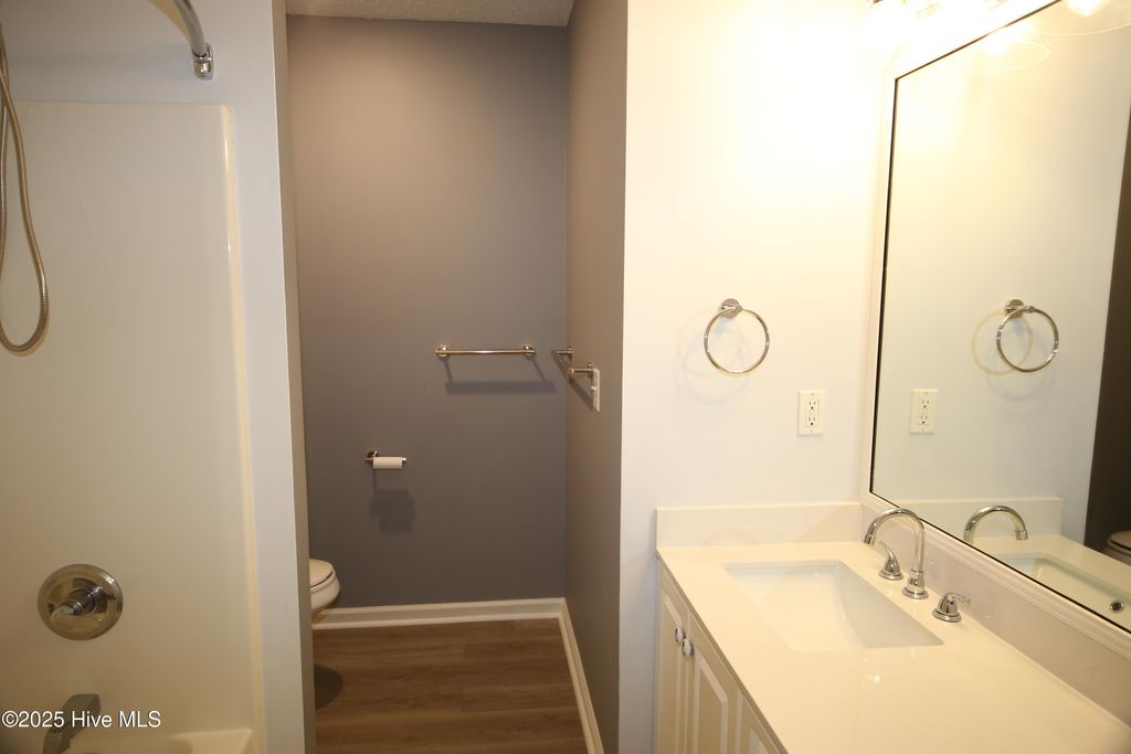 Welcome to Breezewood! This is a bright, airy, spacious 2nd floor unit with vaulted ceilings and a large skylight in the Master Bath, providing ample natural light. It has recently had many upgrades including fresh paint throughout, new vanity countertops, light fixtures, ceiling fans, blinds and LVP flooring added in the bedrooms! Both bedrooms have large walk-in closets with plenty of storage space. The unit also boasts a cozy gas fireplace, a covered, screened in balcony and an outdoor storage closet. Amenities include a beautiful, inviting Community Pool. Breezewood is in a fantastic location, close to The Pointe at Barclays, Novant Health, beaches, parks and the Downtown Riverfront.