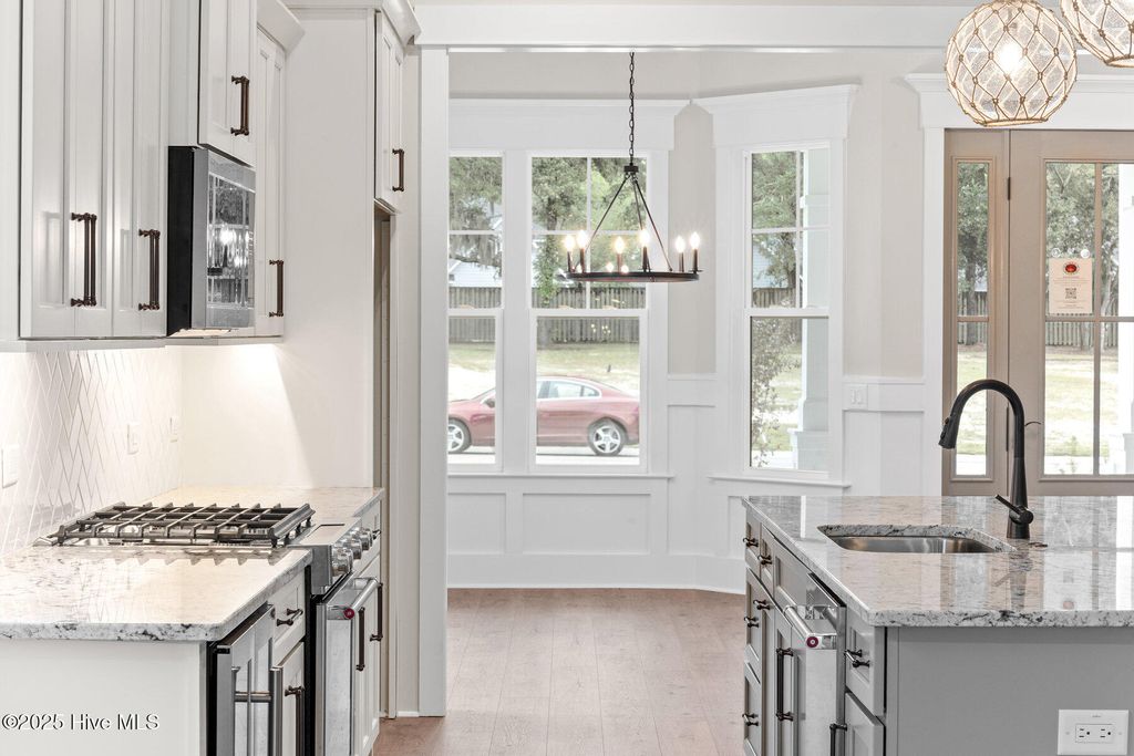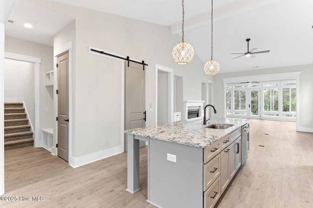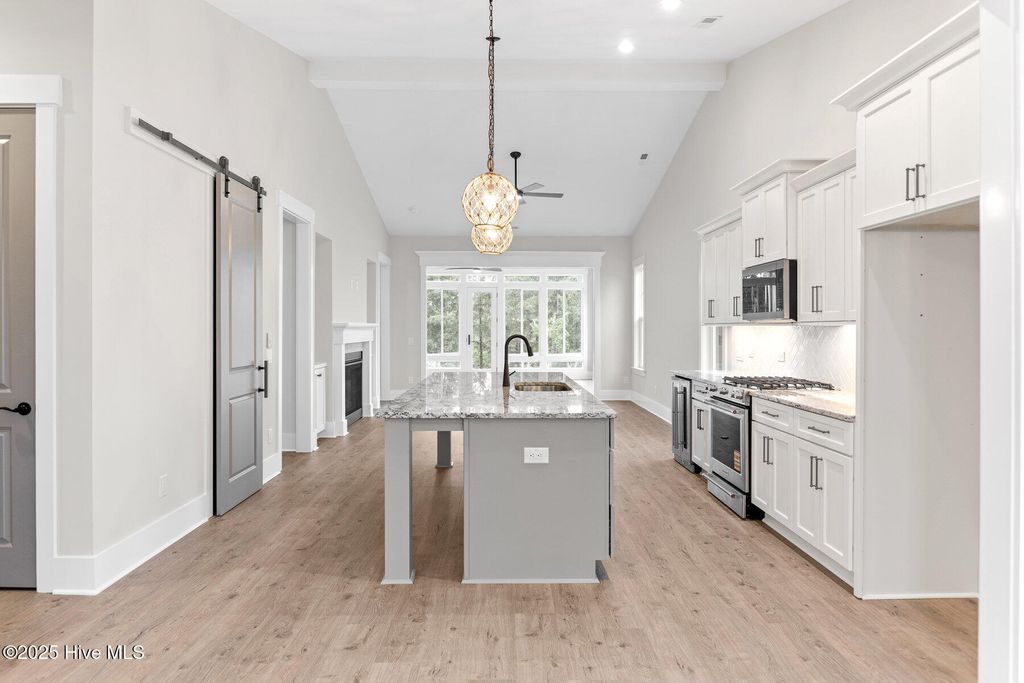Welcome home to Sunset Reach, where this brand-new lakefront home offers 3 bedrooms, 3 full bathrooms, and a versatile bonus room"”perfect as a fourth bedroom, office, or media space. From the welcoming formal dining room to the expansive great room with soaring cathedral ceilings, this home blends comfort, elegance, and functionality. The open-concept kitchen is a chef's delight, featuring a nine foot center island, all stainless-steel appliances including a gas range, walk-in pantry and a convenient beverage fridge"”ideal for entertaining or everyday living. A versatile sunroom overlooks the lake, providing the perfect spot to enjoy your morning coffee or afternoon cocktail year-round. The spacious primary suite, privately tucked away on the rear of the home, is a true retreat with an oversized walk-in closet with custom shelving, and a spa-inspired bath showcasing a fully tiled walk-in shower, dual vanities and a private water closet. Additional highlights include a 42'' natural gas fireplace, 8 foot doors, oversized finished garage with epoxy flooring, large Low-E windows, and energy-efficient features with a HERS certificate for added savings and peace of mind. Step outside to enjoy a custom-landscaped yard with irrigation, perfectly complementing the lakeside setting. Life at Sunset Reach is defined by both tranquility and convenience. Just 10 minutes from downtown Wilmington, this gated waterfront community offers private lakefront and riverfront living with walking and biking trails, a marina with boat slips, pickleball court and a future clubhouse with pool. Whether launching a kayak, relaxing in your sunroom, or heading into town for dining and entertainment on your boat, you'll find the perfect balance of retreat and connection here.