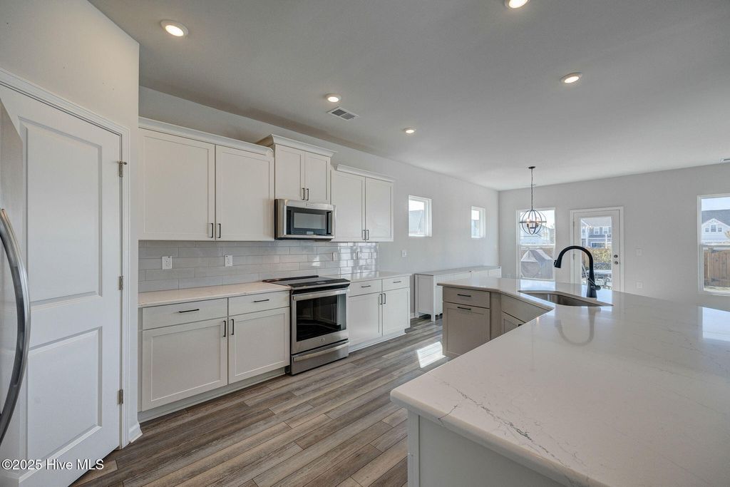 Welcome to your dream home! This like new 4-bedroom, 2.5-bath residence is located in a vibrant community along the scenic Cape Fear River, offering the perfect blend of comfort, convenience, and coastal charm. Greeted by a large welcoming front porch, step inside to discover a bright and sunny interior featuring durable LVP flooring throughout the main level and carpet upstairs. Wet areas such as the baths and nicely sized laundry room have tile flooring. The spacious primary bedroom suite is conveniently located on the first floor, offering privacy and ease of access. The ensuite bathroom is appointed with a large fully tiled shower, double bowled vanity and private WC. The huge closet has been customized to include shelves and extra hanging rods. In addition to the primary suite, there are three additional bedrooms on the second level. Also featured on the second level is a large open space which can serve as a den, workout space or children's game area. You'll love the large, open-concept kitchen"”complete with an abundance of cabinetry, ideal for anyone who loves to cook or entertain. Whether you're hosting family dinners or casual get-togethers, this kitchen is truly the heart of the home. A full package of appliances is included with an induction range, dishwasher, built-in microwave and refrigerator, Enjoy the outdoors in your private, fenced backyard which has been professionally landscaped, or take advantage of the community's outstanding amenities, including multiple swimming pools, a clubhouse, scenic walking and running trails, and a charming waterfront retail and dining area just steps away. Don't miss this opportunity to live in one of the most desirable neighborhoods along the Cape Fear River"”schedule your showing today!