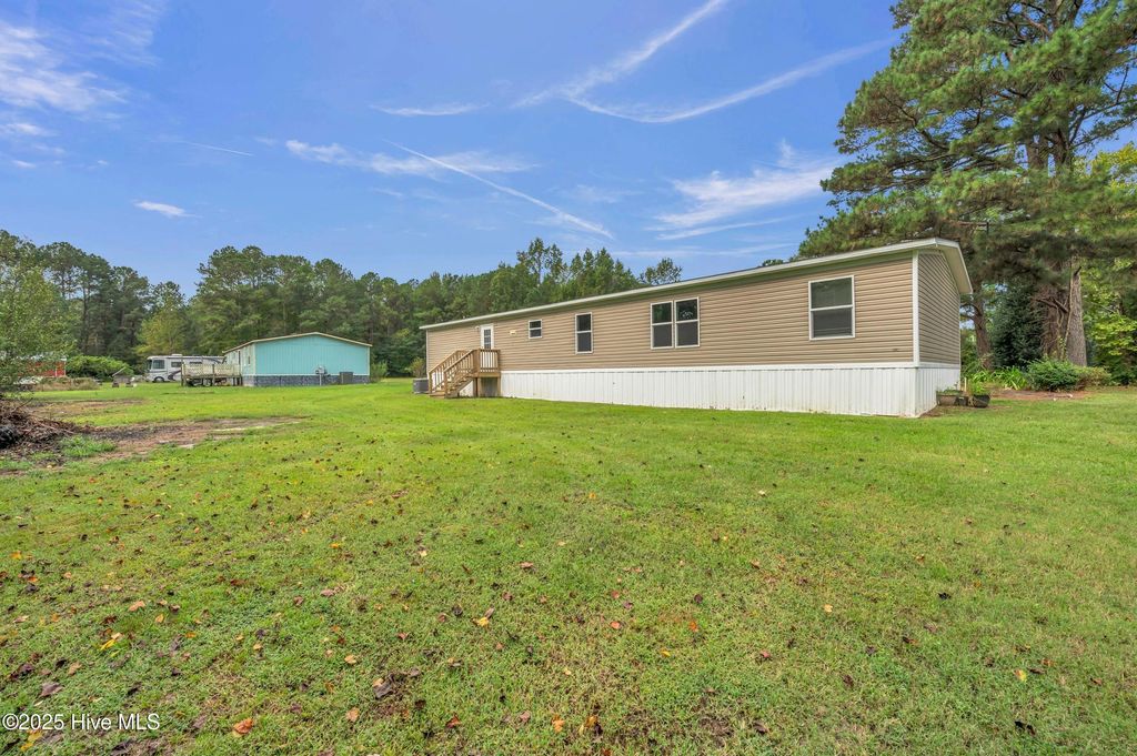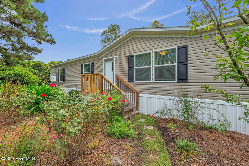 Built in 2022, this 3 bedroom, 2 bathroom home sits on over an acre lot with a recently graded dirt road entry and a large backyard shed for storage or projects. The open-concept, split floor plan features a spacious kitchen with a central island, three spacious bedrooms, and an extra bonus room that can serve as a fourth bedroom, office, or playroom. The primary bathroom offers a spacious layout with a modern walk-in shower. The front of the property has its own electrical pole, providing added convenience and potential for separate use. Beautifully landscaped grounds enhance the curb appeal and provide inviting outdoor spaces, while the private lot offers peace and seclusion. Perfectly located just a 5-minute drive from downtown Burgaw and 10 minutes to I-40, this home provides easy access to Wilmington's dining, shopping, and area beaches, blending rural charm with everyday convenience.