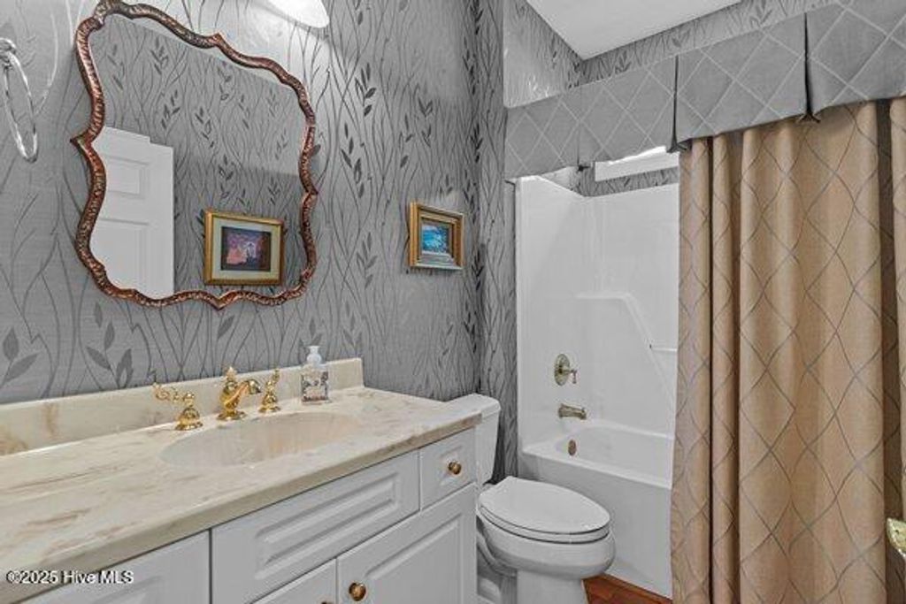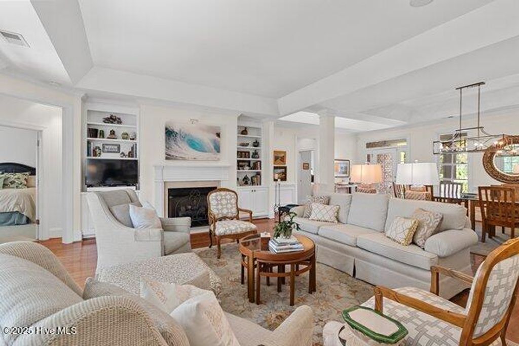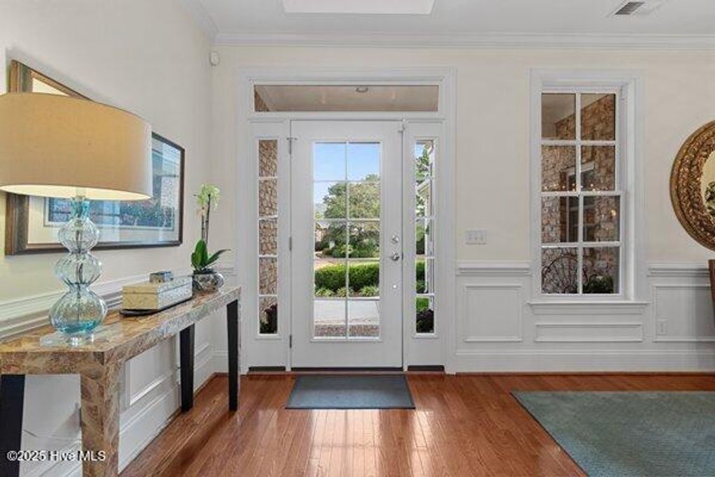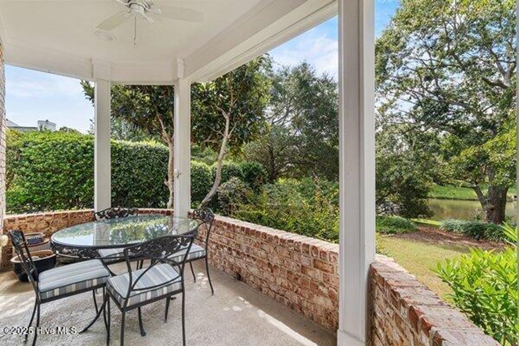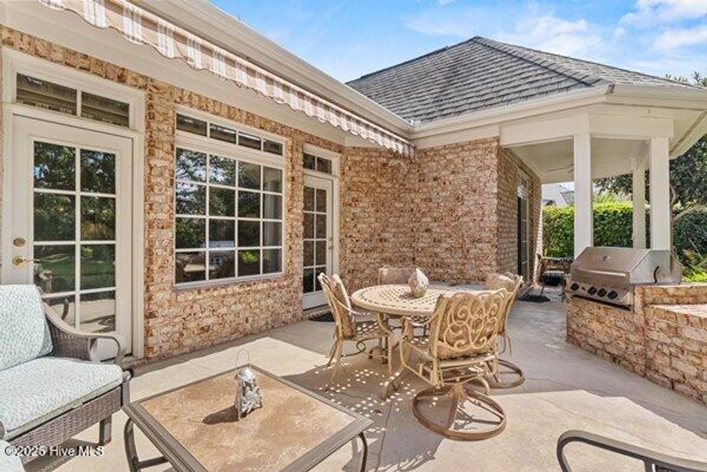 Meticulously maintained brick residence in the private, gated community of Landfall offering low maintenance living with all bedrooms on the main floor and thoughtful updates throughout. Built by Mark Johnson, this home features a bright, open layout with hardwood floors, a spacious living room with custom built-ins, a gas log fireplace, and a formal dining area that flows seamlessly for dinner parties or gatherings. The guest bedrooms are generously sized with recently updated carpet, while the master suite impresses with two closets and an ensuite bath featuring a water closet, double vanities, and a walk-in tile shower. The kitchen, designed for both style and functionality, is equipped with stainless steel appliances, a prep sink in the island, gas cooktop, and dining area for casual meals. Upstairs, a versatile bonus room includes a full bath and heated storage room, with a walk-in attic providing additional, easily accessible storage. Outdoors, a partially covered back porch with built-in gas grill overlooks the pond, creating an inviting space for entertaining or quiet relaxation. Additional features include a two-car garage and sealed crawl space with dehumidifier, all within one of Wilmington's most sought-after gated communities.