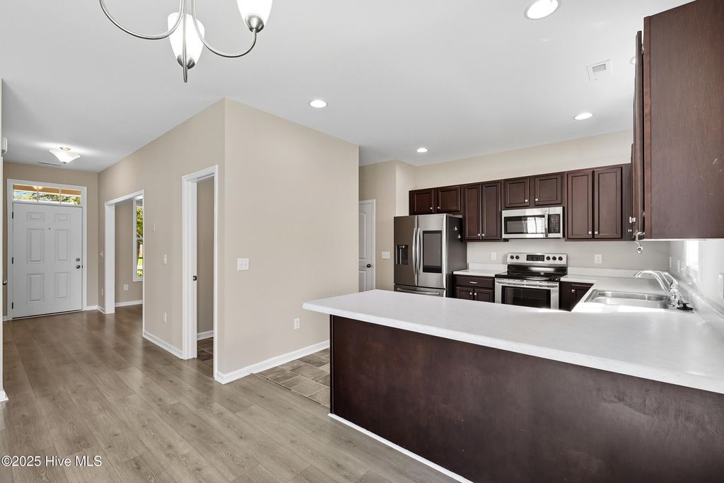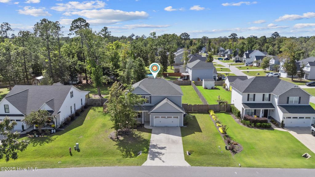 Welcome to this beautiful, 3 bedroom, 2.5 bath home located in the sought-after community of The Knolls at Turkey Creek, a picturesque waterfront neighborhood with access to a boat dock, ramp, and gazebo, perfect for enjoying life on the Northeast Cape Fear River. This property offers the ideal blend of comfort, space, and convenience, just a short drive to Wilmington and the area's sandy beaches, as well as shopping and dining nearby. Step inside to discover an open and bright floor plan featuring luxury vinyl flooring throughout the main living areas. The spacious living room offers a versatile flex area that can be used as a dining or sitting space. The kitchen boasts recessed lighting, stainless steel appliances, a breakfast bar, pantry, and is open to the living area for easy entertaining. A formal dining room, accessible from both the kitchen and foyer, adds elegance and functionality to the layout. Upstairs, you'll find a generous family or media room, a great spot for movie nights or a cozy retreat. The owner's suite features a trey ceiling, large walk-in closet, and a private bath with double vanity, step-in shower, garden tub, and water closet. Two additional bedrooms, a full bath, laundry room, and linen closet complete the upper level, offering privacy and convenience. Outdoor living is just as inviting, with a rocking chair front porch, extended patio, and a large, privacy-fenced backyard, perfect for gatherings or relaxation. Additional features include a two-car garage and a storage shed for extra space. This home offers the perfect combination of modern comfort and tranquil country surroundings, a must-see in The Knolls at Turkey Creek!