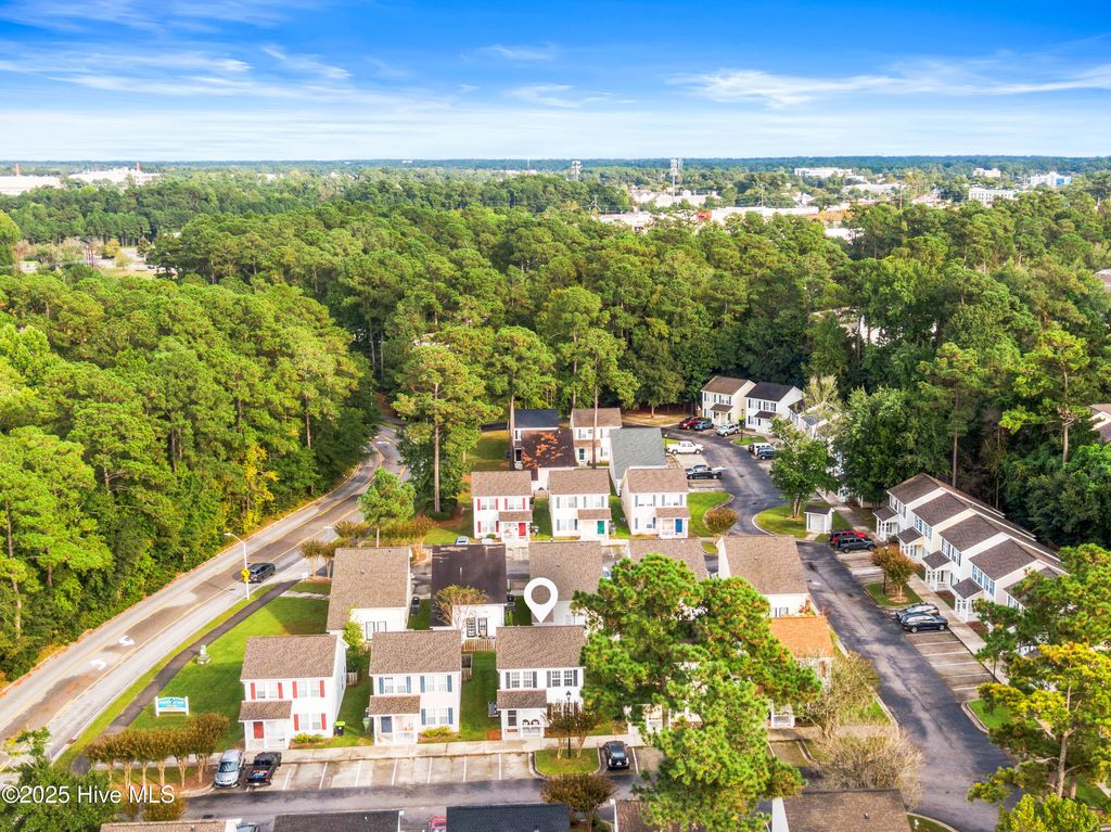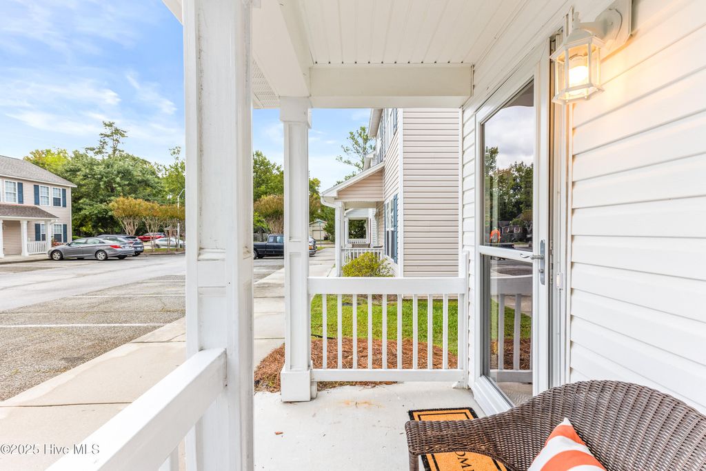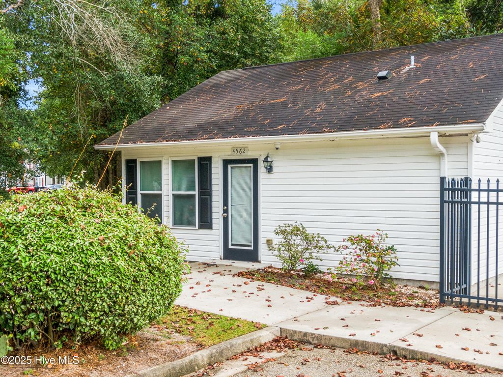 Lovely 3 bedroom and 2 bath home in a prime location close to UNCW, Wrightsville Beach and Downtown Wilmington! Step inside to an inviting living room with vaulted ceilings, abundant natural light, and a cozy fireplace. The kitchen features a bar counter, adjacent dining area, and a huge pantry for storage. The primary bedroom is conveniently located downstairs, while two spacious upstairs bedrooms offer flexibility, with one large enough for a king bed. Outside, enjoy a fenced courtyard perfect for a small dog, plus a storage closet. Fresh paint, new carpet, and all appliances"”including washer & dryer"”convey. Roof replaced in 2019. Community amenities include a pool for summer relaxation. Stylish, convenient, and move-in ready! Shopping is close by including Target, Costco and Home Goods, to mention a few!