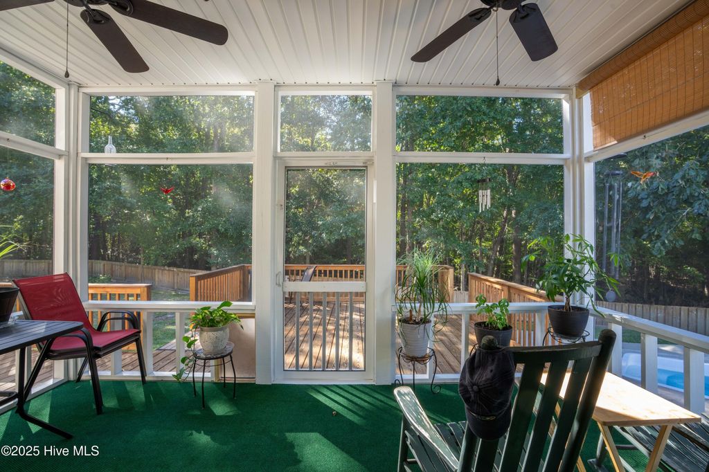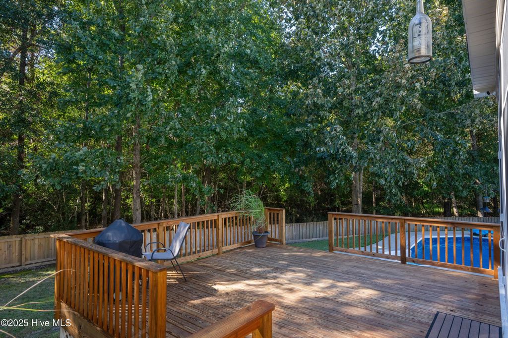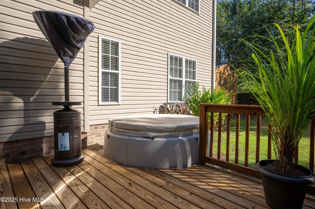 Nestled on a quiet cul-de-sac in the desirable Carolina Forest community, this beautifully maintained 4-bedroom, 2 1/2 bath home offers an ideal blend of style & functionality. Step inside to discover a well thought out floor plan and a spacious living area perfect for relaxing or entertaining with a gas fireplace for ambience as well as comfort on those cooler evenings. The kitchen boasts stainless steel appliances, including a gas stove plus ample cabinet space, and a large breakfast bar that opens seamlessly to the breakfast nook or choose to use the large private dining room. The main floor primary suite is a true retreat, complete with a walk-in closet and private en-suite bath featuring a dual vanity and garden tub. Three additional bedrooms upstairs with a full bath plus a bonus room and loft seating area provide plenty of space for family, friends, guests, or a home office or craft room. Both levels of this home also feature luxury vinyl plank & ceramic tile flooring throughout-no carpet! Then outside, enjoy Eastern NC's fantastic weather from the large screened back porch or from the 16x16 wooden deck, overlooking a fully fenced backyard"”ideal for barbecues! But wait, there's more! You'll find your own 32ft x 16ft inground pool and a separate hot tub to complete this beautiful and private backyard! The attached two-car garage offers plenty of storage and convenience with an expanded driveway for 3 cars across. Located just minutes from Camp Lejeune, local shopping, schools, and dining, this home delivers the perfect mix of suburban comfort along with easy access to everything Jacksonville has to offer. Don't miss your chance to make this move-in-ready home yours and take advantage of low rate, assumable VA mortgage opportunity, if eligible! Schedule your private showing today!