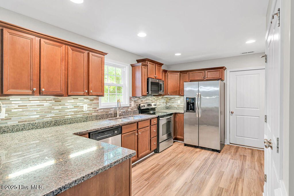 Welcome home to 212 Everett Drive, located in the beautiful waterfront community of Chadwick Shores in desirable Sneads Ferry! This charming two-owner home offers three spacious bedrooms, 2.5 baths, and a large bonus/flex room perfect for a home office, playroom, or guest suite. Fresh new paint and flooring give this home an inviting and updated feel throughout. The open living and dining areas provide plenty of space for entertaining, while the spacious kitchen with modern appliances is ideal for the family chef. Step out to the screened rear porch overlooking the beautifully landscaped yard, perfect for relaxing afternoons or evening gatherings. Additional highlights include a two-car attached garage and community amenities such as a neighborhood dock, playground areas, and pavilions - all within a secure, gated environment. Conveniently located just minutes from area beaches, shopping, and dining, with an easy commute to both Wilmington and Jacksonville. Experience coastal living at its finest in Chadwick Shores - schedule your private showing today!