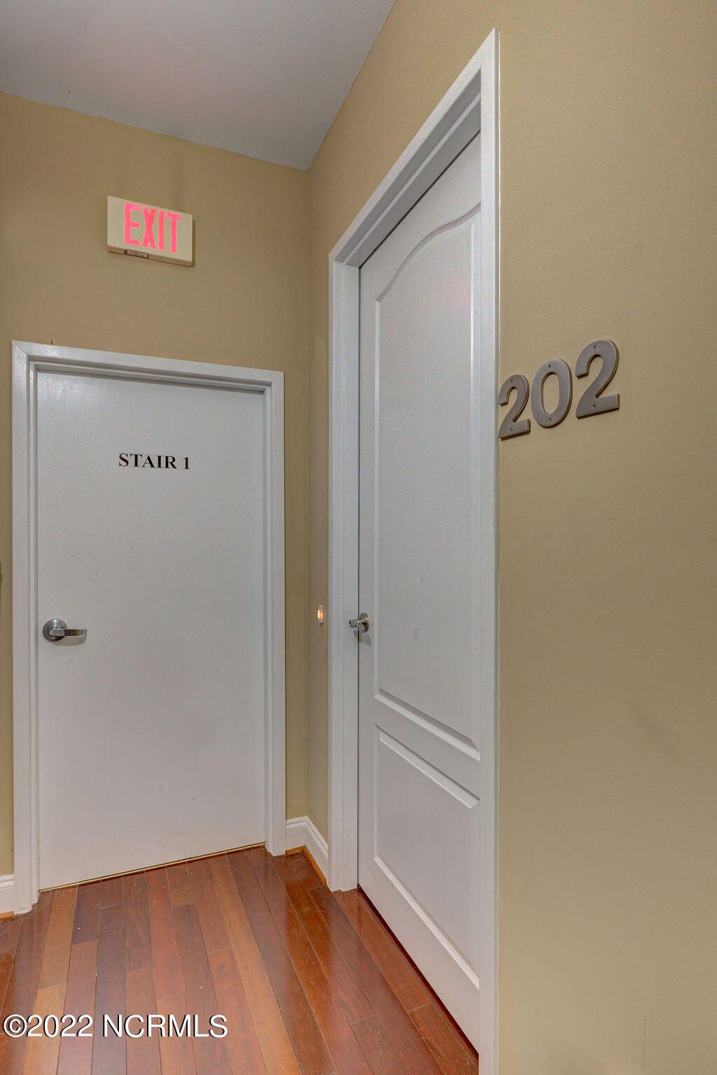 Welcome to this beautifully maintained 1-bedroom, 1-bathroom efficiency condo conveniently located just minutes from downtown Wilmington. Situated on the second floor with easy elevator access, this home also includes a private storage shed on the first level "” perfect for beach gear or bikes. Inside, you'll find hardwood floors throughout the hallway, living area, and kitchen, complemented by a tiled bathroom featuring sleek walls and a spacious shower. The kitchenette includes granite countertops, a built-in microwave, stainless mini-fridge, and sink "” ideal for simple meals or morning coffee prep. Relax on the newly resurfaced rooftop deck "” a perfect spot to enjoy your morning coffee or unwind with an evening cocktail. The HOA provides peace of mind by covering the master insurance policy, pest control, roof maintenance, trash service, and more. Unique and thoughtfully designed, this condo offers a rare opportunity in an unbeatable location. Schedule your private showing today "” there's nothing else quite like it on the market!