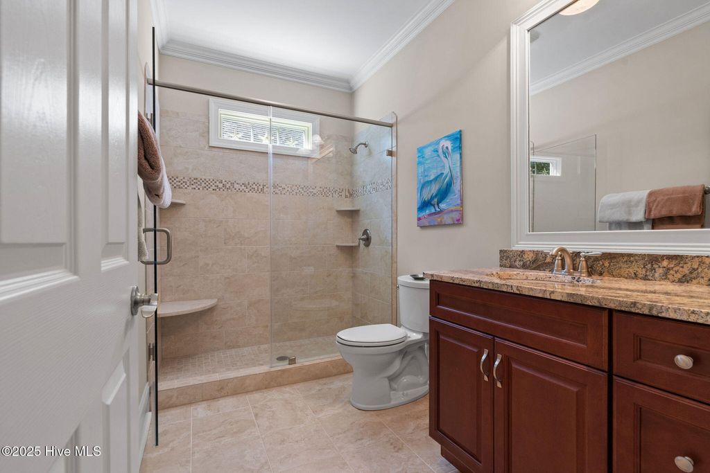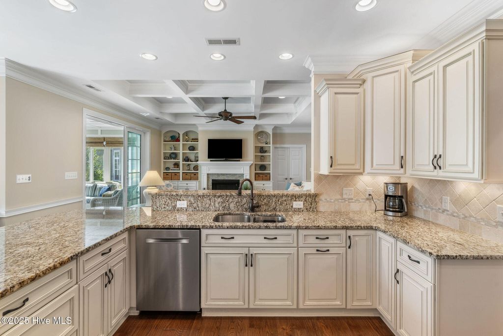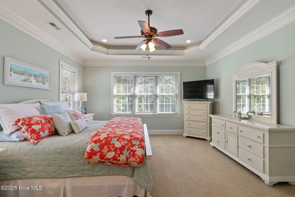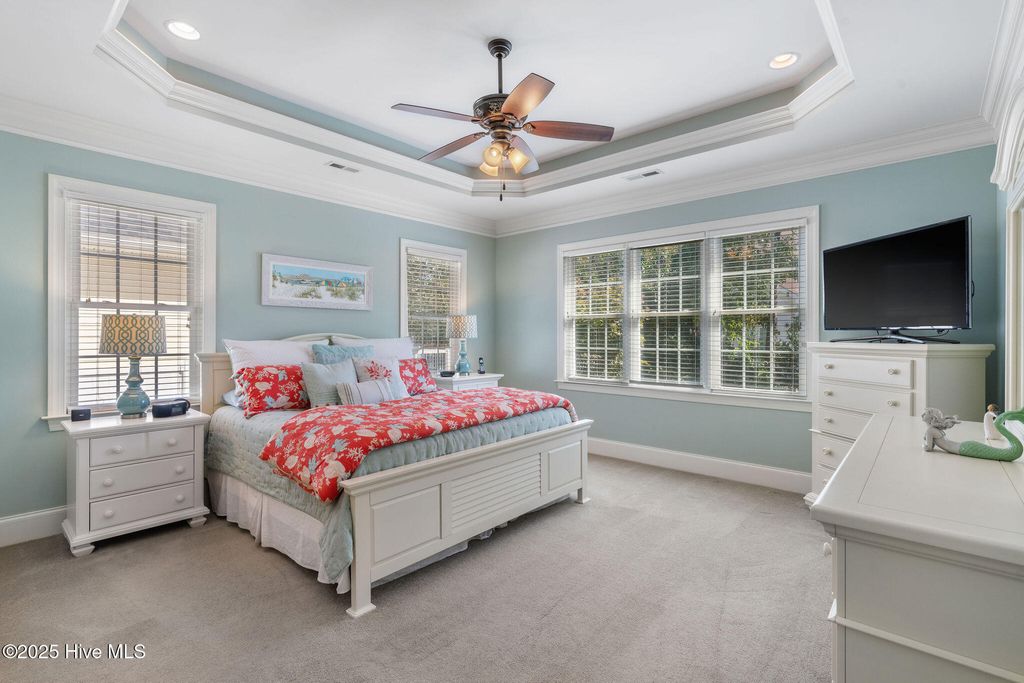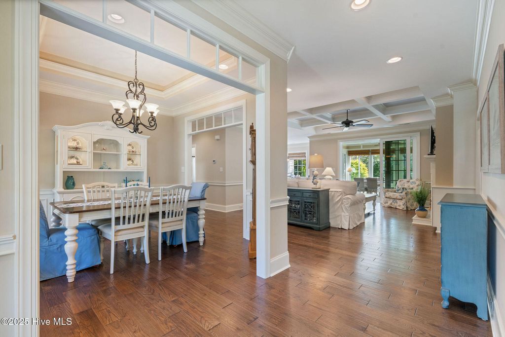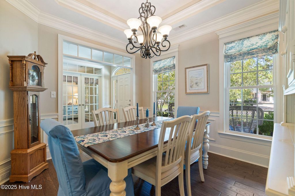 This classic custom-built low country home located in the highly sought after Irwin Drive neighborhood in St. James Plantation. Blending both timeless design with modern features it truly offers both beauty and functionality. The inviting tiled rocking chair front porch with classic columns welcomes you inside, where the foyer opens to a bright, spacious, and open floor plan with four bedrooms and three full bathrooms and a ½ bath on the main floor. Beautiful 3/4-inch hardwoods flow seamlessly throughout the main living areas. Just off the entry, French doors lead to a versatile den/office with a closet, easily serving as a guest bedroom if desired. The great room impresses with an elegant, coffered ceiling, intricate crown molding, and propane fireplace flanked by custom built-in cabinetry perfect for storage and display. Extensive custom accent lighting has been installed throughout the home. The well-designed kitchen is equally suited for everyday living and entertaining, featuring ample granite counter space, a large counter with both low and raised bar seating, a gas cooktop, stainless steel appliances, soft-close dovetail cabinetry, and an oversized walk-in pantry. A formal dining room with a tray ceiling, crown molding, and wainscoting offers the perfect setting for large get-togethers, while the breakfast nook provides a more intimate space. Enjoy year-round comfort in the exceptional floor to ceiling windowed heated/cooled sunroom where there is plenty of space to gather and a cozy, cheerful area to enjoy your morning cup of coffee. Enjoy the mild Carolina weather and private fenced in backyard with its neat easy-care landscaping from the low maintenance Trex deck. The owner's suite is a true retreat, showcasing an octagonal tray ceiling with crown molding. The spa-like bath offers dual granite vanities, a large, tiled shower with bench seating, a heated/jetted tub, and a spacious walk-in closet. Guests will appreciate a private first-floor suite with access to an adjoining full bathroom complete with a spacious, tiled shower. Upstairs, a generous bonus/flex room and additional bedroom with a full bath provides the perfect space for multigenerational living, in-laws, or long-term guests. This space is bright with plenty of natural light coming from a dormer that extends nearly the length of the room. Storage abounds with two walk-in attic accesses, ample closet space all with built-in shelving, and an oversized two-car garage. Energy-efficient features include a radiant barrier attic sheathing, enhanced insulation package, Trane multi-zone, dual heat, HVAC system, and an encapsulated crawlspace with dehumidifier. If you are looking for a thoughtfully designed, well-built custom home that balances style, comfort, and efficiency, you have found it here in St. James Plantation.
