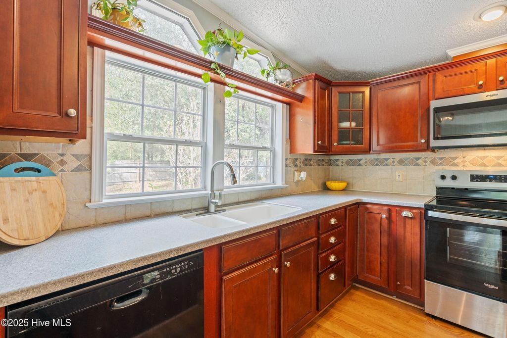 Welcome to 1171 Asheville Lane in Boiling Spring Lakes, North Carolina "” a private lakefront retreat offering the perfect blend of comfort, functionality, and natural beauty. Nestled on nearly one acre of land, this unique property provides a rare opportunity to enjoy peaceful, unrestricted living with direct water access, modern conveniences, and proximity to the coastal charm of Southport, Oak Island Beach, and Wilmington. This spacious three-bedroom, three-bathroom home is designed for relaxed, everyday living as well as effortless entertaining. The open floor plan creates a seamless flow from the main living area to the kitchen and dining spaces, with large windows bringing in abundant natural light and offering serene views of the lake. At the heart of the home is a generous kitchen featuring a large island with solid surface countertops, offering ample prep space and seating "” perfect for family meals, casual gatherings, or holiday entertaining. Step outside onto the expansive covered deck overlooking the lake and enjoy the peaceful sights and sounds of nature. Whether sipping your morning coffee or unwinding in the evening, this space offers year-round enjoyment. Just beyond the deck, the backyard leads to your own private dock on a quiet, stocked lake, where you can fish for bass and carp or launch a kayak for an afternoon paddle. The property itself offers nearly an acre of landscaped and natural space, including a fenced-in yard ideal for pets, play, or gardening. You'll find mature hardwoods and fruit trees throughout the lot, creating a peaceful, shaded environment with plenty of character. Two storage sheds provide room for tools, equipment, or hobby gear, and the property also includes RV hookups and a designated area for boat parking "” a rare find in this area. For those who appreciate self-sufficiency and reliability, this home includes multiple wells, a full irrigation system, and a generator plug-in for backup power. A new commercial-grade water heater and a recently installed HVAC system ensure efficient, up-to-date comfort for years to come. With no HOA restrictions, you'll have the freedom to make this property truly your own whether you're looking to expand, garden, host gatherings, or simply enjoy a quiet, private lifestyle. The home's location in Boiling Spring Lakes offers a balance of rural peace and convenient access to nearby attractions. You're just minutes from the historic town of Southport with its charming waterfront, restaurants, and boutiques, and only a short drive to the beaches of Oak Island. The vibrant city of Wilmington, with its airport, shopping, dining, and cultural events, is just 30 to 35 minutes away. 1171 Asheville Lane is more than just a home it's a lifestyle. Whether you're seeking a permanent residence, a vacation getaway, or an investment in your future, this lakefront property offers space, privacy, and flexibility in a beautiful natural setting. Don't miss the chance to make it yours.