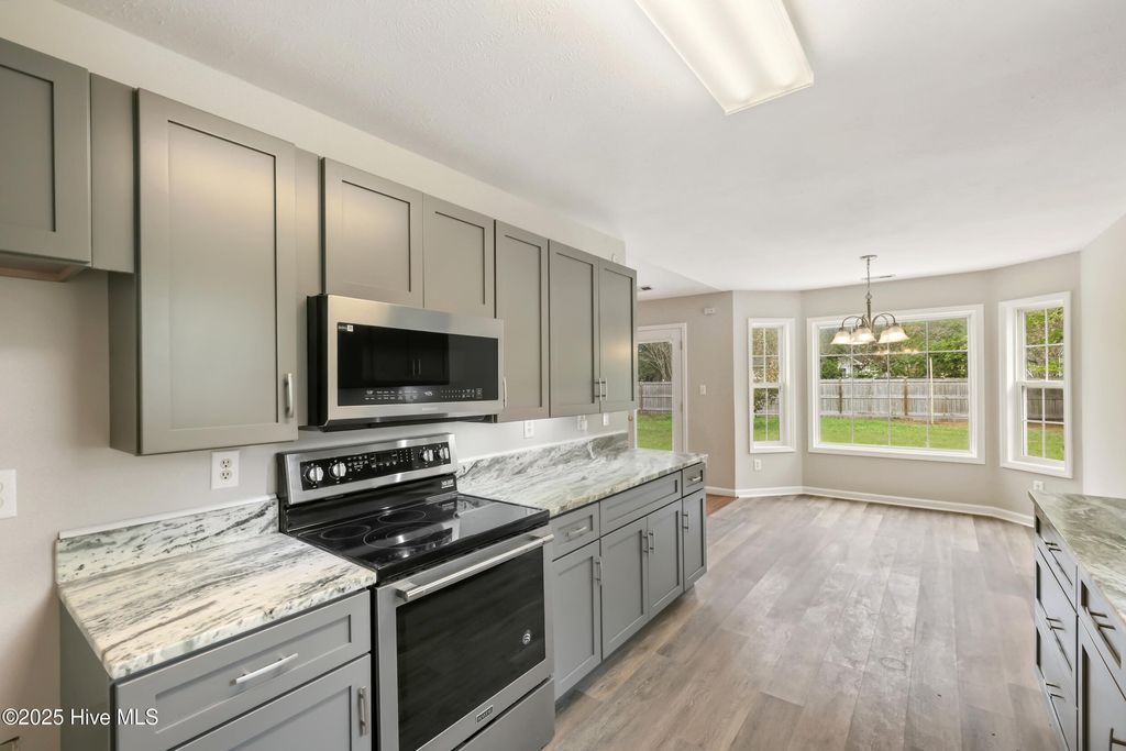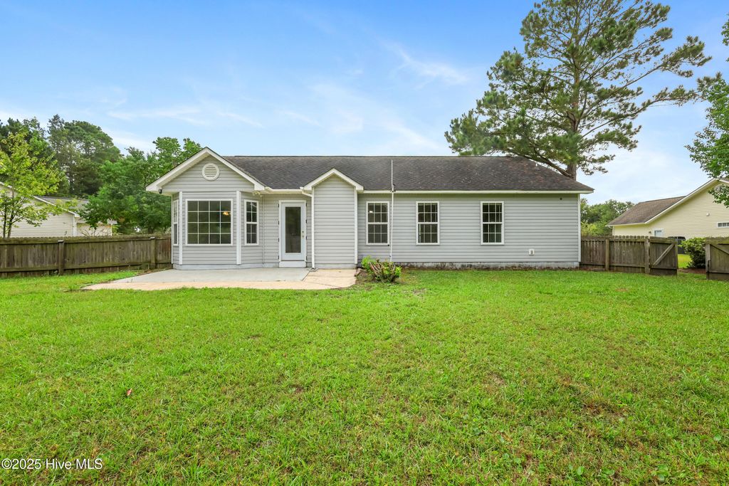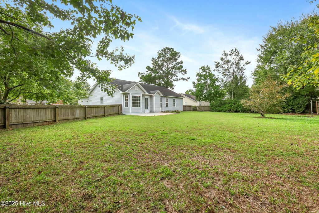 Welcome home to this charming 3 bedroom, 2 bath residence perfectly situated on a quiet cul-de-sac lot in the sought-after NorthChase community. Enjoy the ease of one level living and a bright open floor plan freshly painted and ready for move-in! Step into the spacious living room featuring vaulted ceilings, laminate flooring, and a cozy gas log fireplace, a warm and welcoming centerpiece for family gatherings. The updated kitchen impresses with granite countertops, stainless steel appliances, luxury vinyl flooring, ample cabinets and counter space. It opens to a sunlit dining area with bay windows, creating a seamless flow to the living room perfect for entertaining or everyday living. The owner's suite offers a peaceful retreat with luxury vinyl flooring, a large walk-in closet, and an updated personal bath. Two spacious guest bedrooms share a stylish updated full bath. Enjoy outdoor living at its best with a large partially fenced backyard, extended patio, and plenty of room for relaxing or play. A two-car garage and oversized lot add convenience and curb appeal. Located in the highly popular NorthChase community, residents enjoy access to top-notch amenities including an Olympic-size swimming pool, tennis and basketball courts, playground, picnic area, trails, and fishing ponds. You'll also love the neighborhood's active fun community events. Ideally located near shopping, dining, and just a short drive to area beaches and Historic Downtown Wilmington. This home combines comfort, style, and convenience, all in a vibrant community setting! Don't miss out!