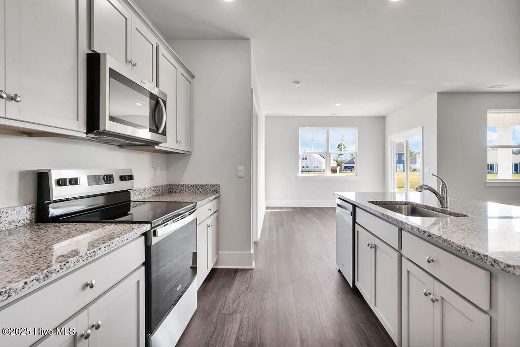 New home in Wilmington, North Carolina. Welcome to The Grove at Blake Farm, Wilmington's newest amenity rich community that will offer a variety of house plans to suit any lifestyle. The community is right off Highway 17 near Porters Neck, Mayfaire, Hampstead, and a conveniently located near highway I40 to downtown Wilmington. The Aria floorplan features spacious living, eating, and entertaining all-in-one open floorplan. 3 bedrooms, 2 full bathrooms, and 2 car garage. This 1,618 square feet home offers LVP floors in the common areas and cushioned carpets in the bedrooms. The Kitchen has granite countertops and stainless electric range Microwave and Dishwasher. For more peace of mind, this home provides a smart home technology package, Deako Lighting, and more. Our amenity center is in the works that will include a swimming pool, splash pad, playground, multisport court, grilling area, etc. is currently under construction.