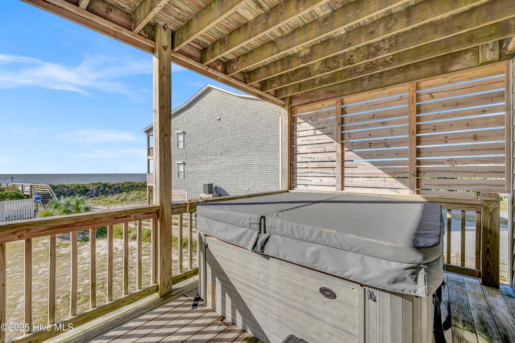 Escape to Topsail Island with award winning beaches and create your coastal memories at this custom-built home with a breathtaking ocean and sound view from every room. This cash flow machine produced over $197K income in 2024 and over $191K in 2025 thus far. One of the HIGHEST ROI that has hit the NC market this year! The sellers use it for their own pleasure as well. Therefore, the potential is higher. This coastal charmer with 6 bedrooms and 6.5 bathrooms can accommodate up to 22 people. Enjoy a glass of wine in the hot tub while watching the lovely Carolina sunsets on one of seven decks, take a walk on the beach, pick up seashells, chase crabs and let the sand squish between your toes while listening to the ocean waves singing. The beach access is right in front of the home. It could not be possibly better! The home also features an elevator for your convenience and a private Master Suite which makes up the entire top floor offering romantic evenings on your own deck. During the days when we get hit with some liquid sunshine, you can entertain on the third floor with a large living room and a gourmet kitchen that offers quartz countertops, stainless-steel appliances and a working island with bar stools. You will be blown away with the mindset of the current owners with what they envisioned while making this property feel like a home while on vacation. The property includes solar panels that will be paid for at closing. Additional features of the home include wet weather entry, ground-level storage, ample parking space on a large lot which includes a 4-bay carport, outdoor shower, and much more! This seems almost like a dream come true. Add to it that the owner is offering a one-year home warranty, and you are looking at a unicorn of real estate! Take a deep breath and enjoy this Southern paradise with its all that it offers.