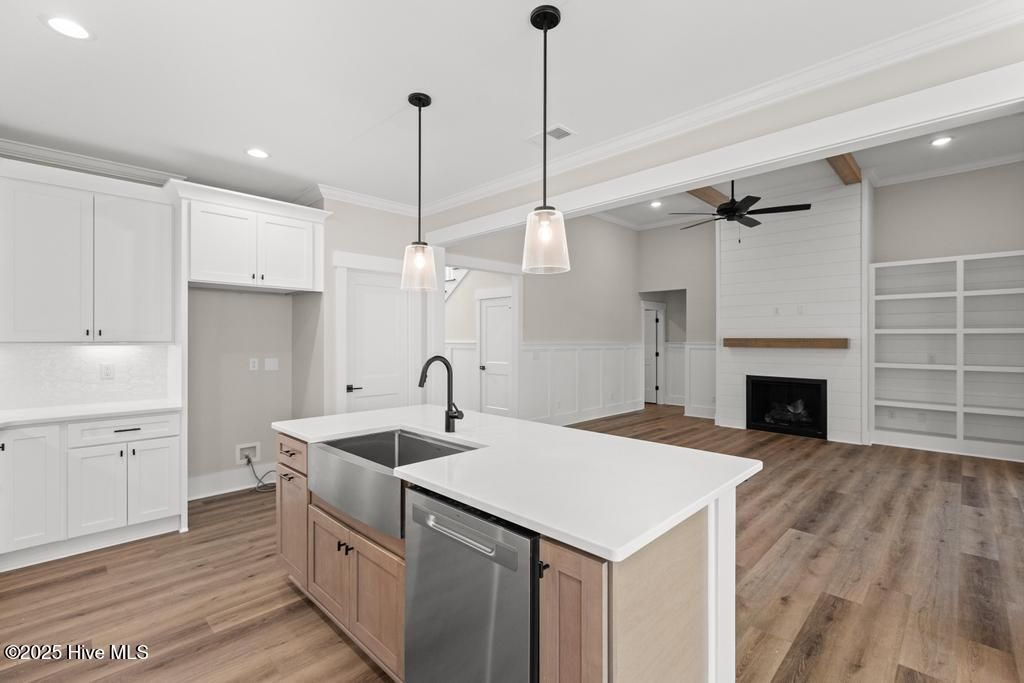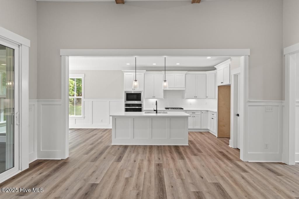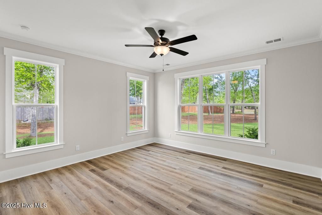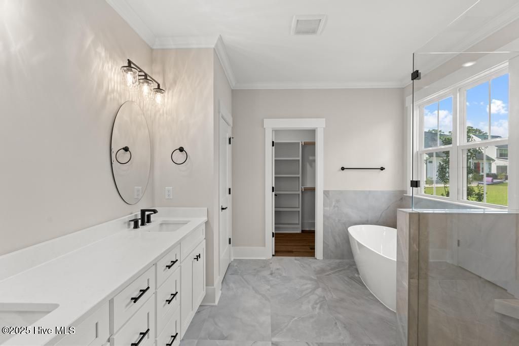 $10,000 use as you choose allowance with preferred closing attorney! Welcome to this Pond front home with stunning curb appeal on an estate cul-de-sac home site at .73 acres with beautiful water views. Covered front porch featuring painted columns & metal roof accents. Entering the two-story foyer you'll find a trim package that will blow away your expectations. Guest Suite opens up right off the Foyer with full bathroom. As you enter the great room, the open floor plan is wonderful for entertaining or a large family! The living area has 13' high ceiling with stained beams, a gas fireplace with shiplap surround. A 12' slider door opens up to the oversized Screened-In Back Porch. Kitchen features quartz counters, large island w/ farm sink, tile backsplash, stainless steel appliance package featuring gas cooktop, wall oven/microwave, custom wood cabinets w/ soft close doors & drawers plus under cabinet lighting. Dining nook right off the kitchen with tons of natural light and those water views! First Floor Primary Suite with a must see bathroom featuring dual sink vanity, custom tile shower, stand alone tub and large WIC with wood shelving. The 2nd Floor has 2 additional bedrooms, 2 full bathrooms and an oversized Bonus Room or second living area. Walk in Mudroom and Laundry off of the double car garage entrance. Tankless gas water heater. Concrete front porch, screened-in back porch and patio great for grilling or fire pit, sod & irrigation on front, sides & back yard with a separate well just for irrigation. Located only 7 minutes from Topsail Island and Surf City Beaches. Topsail Schools. Crown Pointe includes double sidewalks, pool & clubhouse plus dock, gazebo and day-dock for boating. No cookie cutter details in this custom waterfront community!