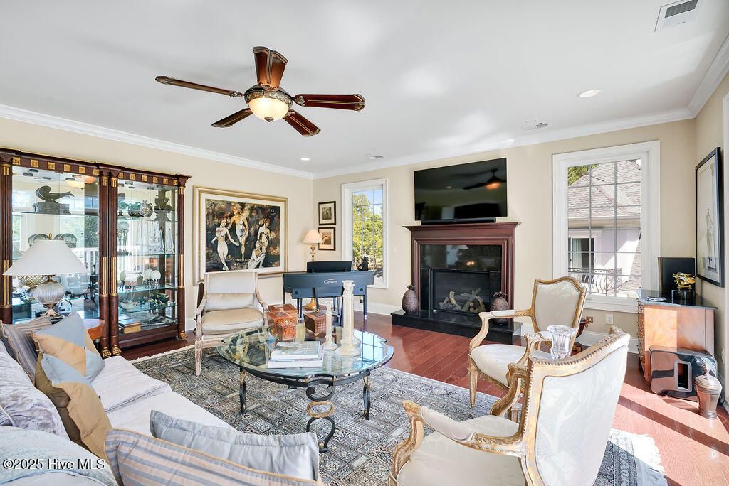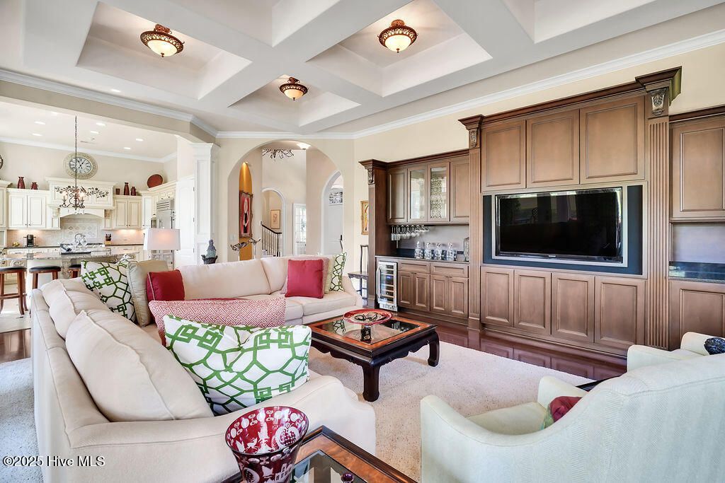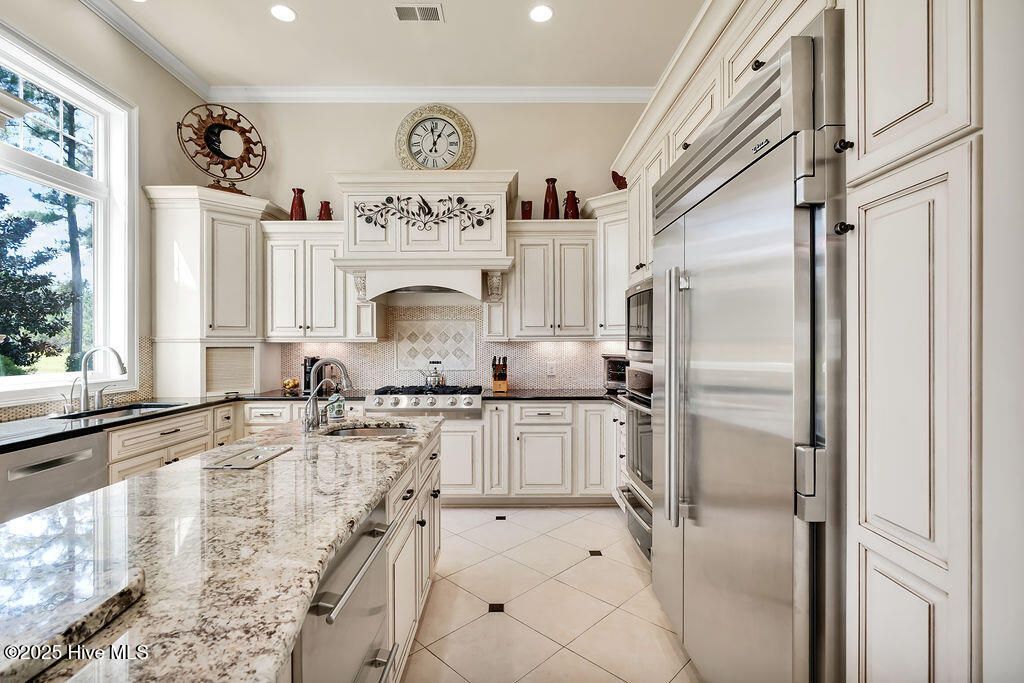 Discover refined luxury and timeless craftsmanship in this exquisite estate by builder Steve Carroll, located on the 11th fairway of Leopard's Chase golf course. Nearly every room offers breathtaking views of the fairway, providing a serene backdrop for daily living. This home showcases quality and meticulous attention to detail through its architectural elegance and thoughtfully designed floorplan, making it perfect for both entertaining and everyday activities. As you enter the foyer, admire the grand staircase, soaring ceilings, and a stunning chandelier. Marble floors lead to a great room featuring a fireplace, coffered ceilings, a custom-built wall unit with bar & wine cooler, and French doors that beautifully frame the golf views. Entertain on the lanai, complete with an outdoor kitchen and remote controlled phantom screens. Transition to the gourmet kitchen, highlighted by a magnificent island, complemented by high-end appliances and custom cabinetry. Host gatherings in the spacious formal dining room, accented with elegant pillars. The luxurious primary suite features a linear fireplace, bay windows, and a sitting/sun room. The en suite bath boasts a jetted tub and a walk-in shower, plus a water closet with a bidet. Two generous walk-in closets with custom cabinetry complete the suite. An executive office, designer half bath, and laundry room finish the first floor. An elevator conveniently transports you to the second floor where you'll find three guest rooms and 2 full baths. There's a perfect entertainment room, featuring a full wet bar, Sonos surround sound, and gas fireplace. Plus, a deck with panoramic views of the golf course. Ocean Ridge has a vibrant social scene & amenities including a Sunset Beach clubhouse, four golf courses, multiple clubhouses, restaurants, community garden, 3 pools, sauna, steam room, jacuzzi, 2 fitness/ amenity centers, pickleball courts, nature pavilion, walking trails, meeting and party rooms, and a party lawn.