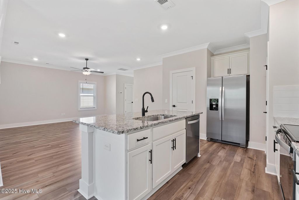 The Carolina's open-concept layout seamlessly connects the kitchen, dining area, and family room, creating a bright and inviting space perfect for everyday living and entertaining. The chef-ready kitchen boasts modern stainless steel appliances, granite countertops, and a large island, allowing for effortless meal preparation while staying engaged with guests and family. This thoughtfully designed layout enhances both comfort and functionality for a truly exceptional living experience. With its stunning exterior, the Carolina leaves a lasting impression. The spacious two-car garage offers plenty of room for vehicles and additional storage, while the beautifully landscaped front yard enhances the home's welcoming charm. Elegant stone detailing adds a sophisticated touch, making this home a standout in any neighborhood.