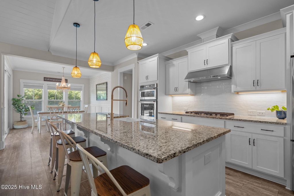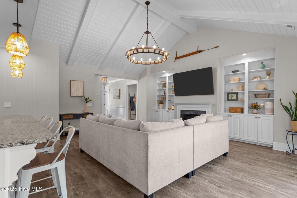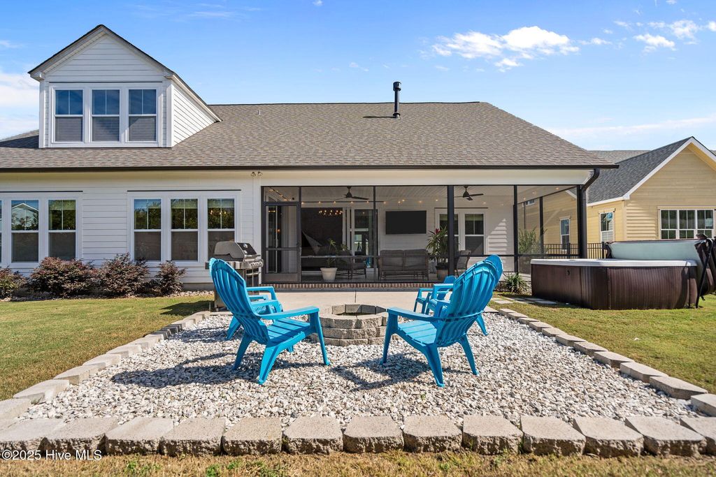 Welcome home to coastal living at its finest in the desirable waterfront community of Salters Haven. This thoughtfully designed 4-bedroom, 4.5-bath home with a bonus room and dedicated office offers over 3,400 sq. ft. of relaxed elegance and everyday comfort. The open layout creates an inviting flow between the kitchen, dining, and living areas "” ideal for both quiet mornings and lively gatherings. The chef's kitchen is a true centerpiece, featuring high-end appliances, a gas cooktop, and an oversized island perfect for entertaining. Vaulted ceilings, custom built-ins, and a cozy fireplace add warmth and style to the living space. Step outside to your private backyard retreat with a screened-in porch, hot tub, fire pit, and fenced yard "” perfect for unwinding or hosting friends. The primary suite offers a en suite bathroom with a tiled walk-in shower, double vanity, and a large walk-in closet with direct access to the laundry room. Two additional bedrooms and bathrooms are on the main level, while upstairs you'll find a fourth bedroom and generous bonus room, each with their own private bath. Just a short walk from your door, Salters Haven's resort-style amenities include a pool, clubhouse, and boat and RV storage. Regular community events and gatherings make this one of the most welcoming and connected coastal neighborhoods around. Life at Salters Haven feels like a vacation you never have to leave.
