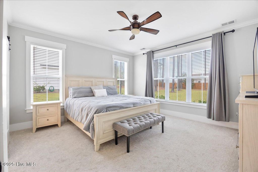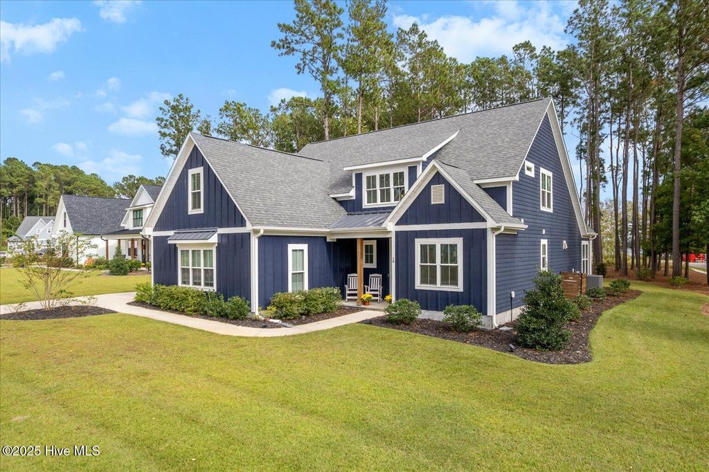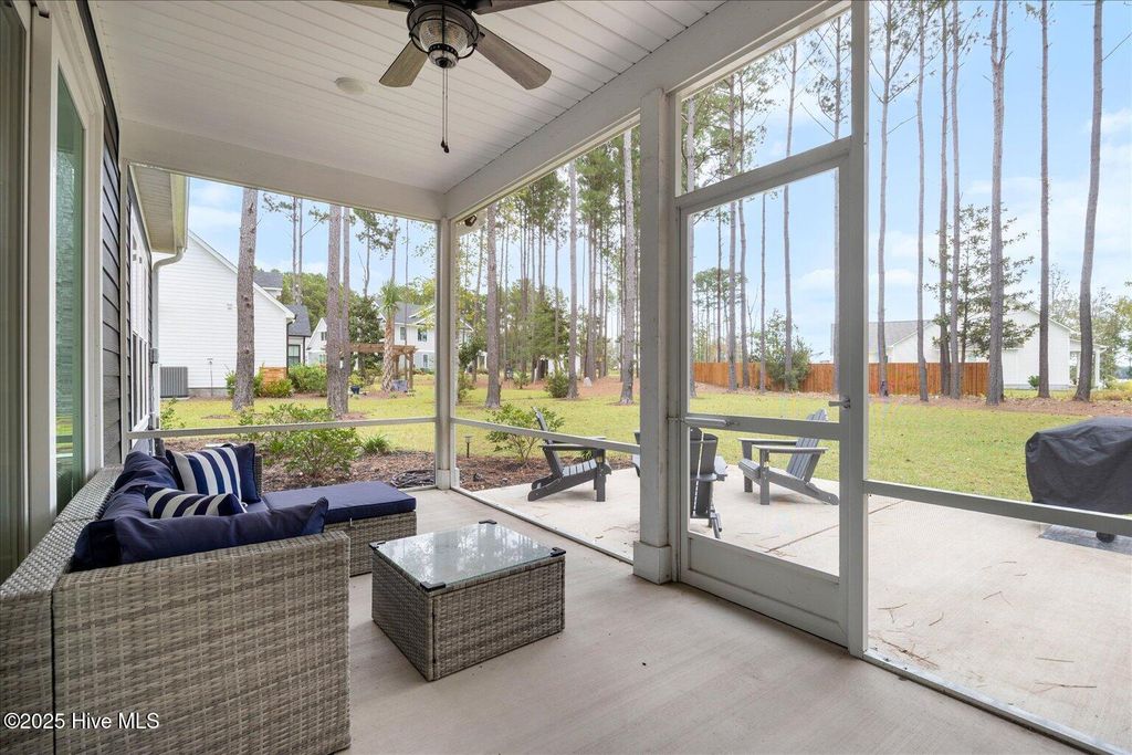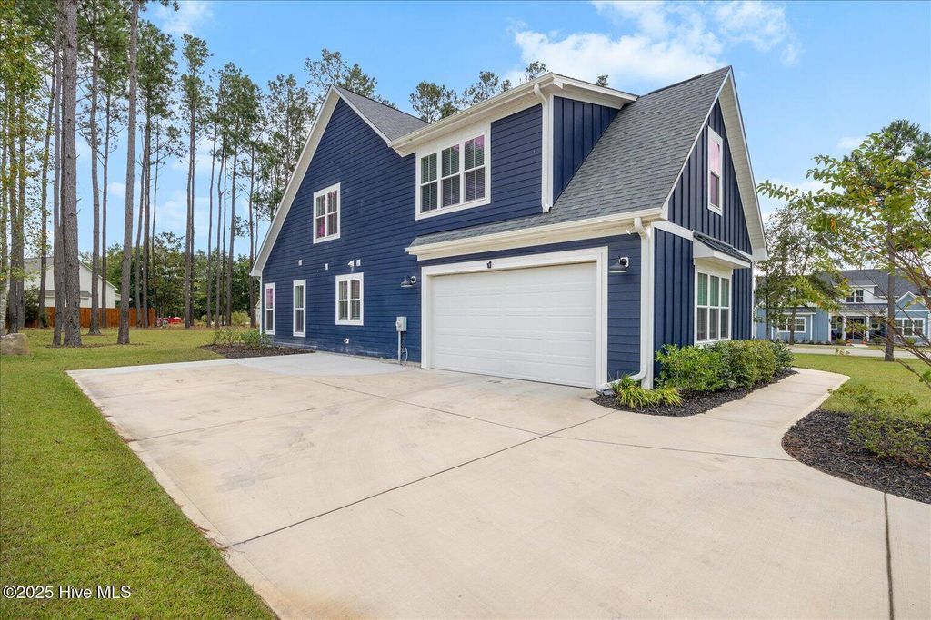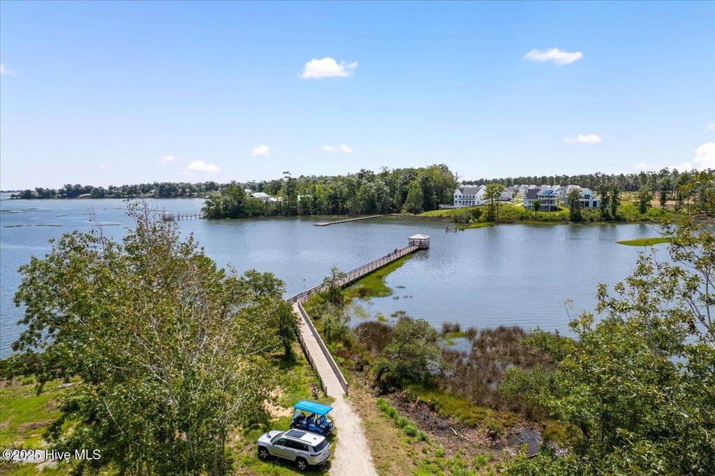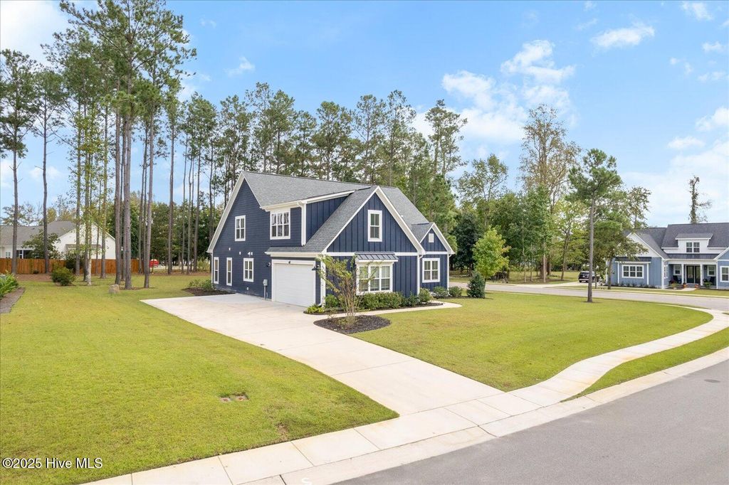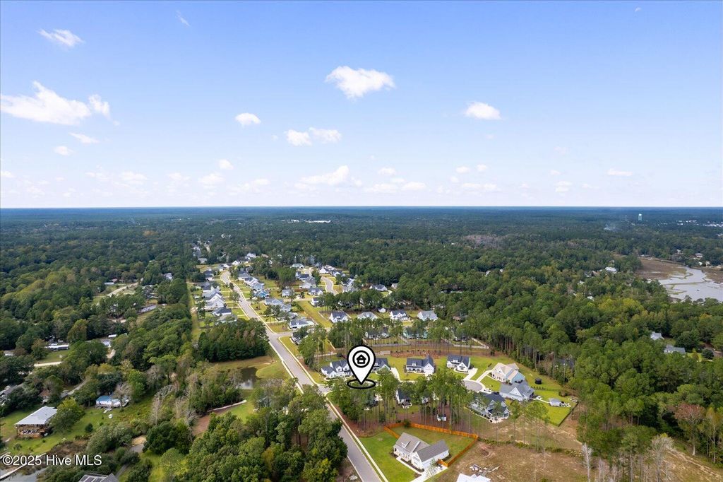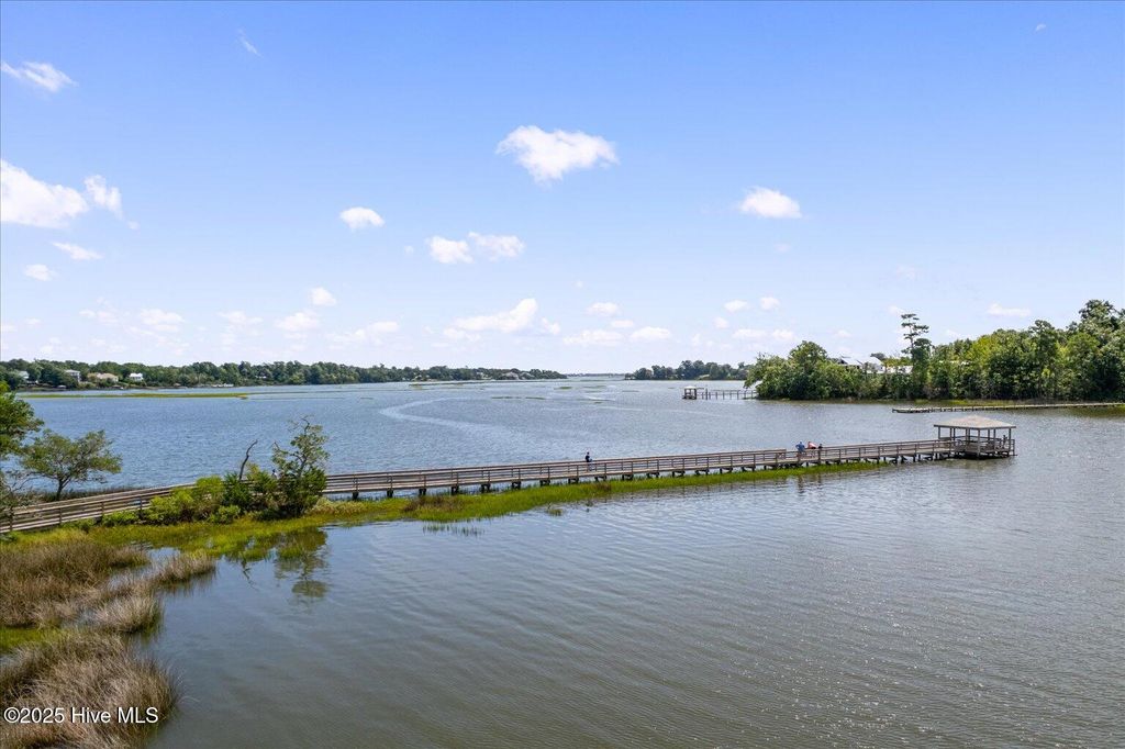 This beautifully crafted home sits on a corner estate lot overlooking scenic Virginia Creek and offers the perfect blend of elegance and functionality. A welcoming covered front porch leads into a grand two-story foyer filled with natural light and custom trim details throughout. The spacious main living area features an open concept design ideal for gatherings and everyday living. The great room includes a cozy gas fireplace with shiplap surround and opens through large telescoping sliders to an expansive screened porch"”perfect for enjoying the coastal breeze. The chef's kitchen is designed for both style and convenience, featuring quartz countertops, a large island with farmhouse sink, custom soft-close cabinetry, and under-cabinet lighting. A nearby dining nook and walk-in pantry with space for a coffee or wine bar make entertaining effortless. The first-floor primary suite provides a relaxing retreat with a dual vanity, custom tile shower, and walk-in closet with wood shelving. Upstairs are two spacious bedrooms, two full baths, and a versatile bonus room offering plenty of flexibility for guests, hobbies, or media. Additional highlights include both full house filtration and reverse osmosis system under kitchen sink, a mudroom and laundry area off the main living space, full yard irrigation with a dedicated well, and a fully sodded lawn. Crown Pointe residents enjoy a true coastal lifestyle with double sidewalks, a community pool and clubhouse, and access to a dock, gazebo, and day dock for boating. Ideally located just seven minutes from Topsail Island and Surf City beaches and within the highly rated Topsail School District.