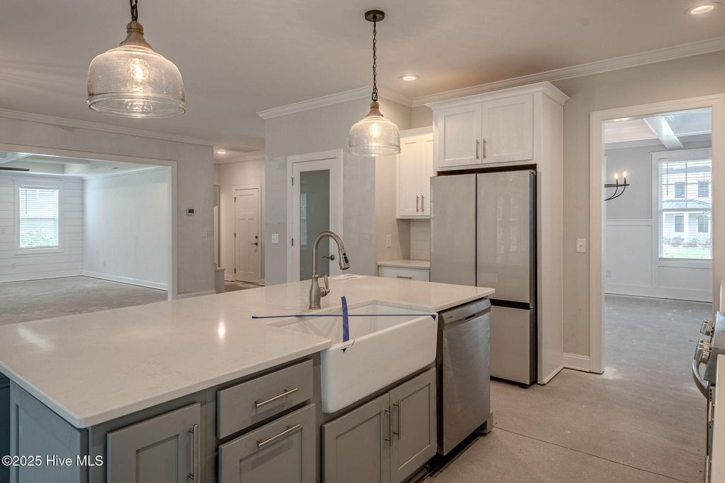 Saratoga features beautiful homes on extra large lots just a few minutes away from all the conveniences of Hampstead. When the Hampstead bypass opens, it will be a quicker trip to Mayfaire, Porters Neck, Downtown Wilmington. You will love the thoughtful features of this home! It features a gas range and gas logs, coffered and tray ceilings, an enormous kitchen island, and shiplap walls. Stylish accent walls in the bedrooms create unique spaces. Outdoor living areas include a front porch and a screened back porch. Downstairs, the LVP flooring was removed to reveal the concrete slab. Rather than installing new LVP, I would consider staining and polishing the slab for a more modern look. The seller treated the house for sporadic organic growth, but they did not complete any testing.