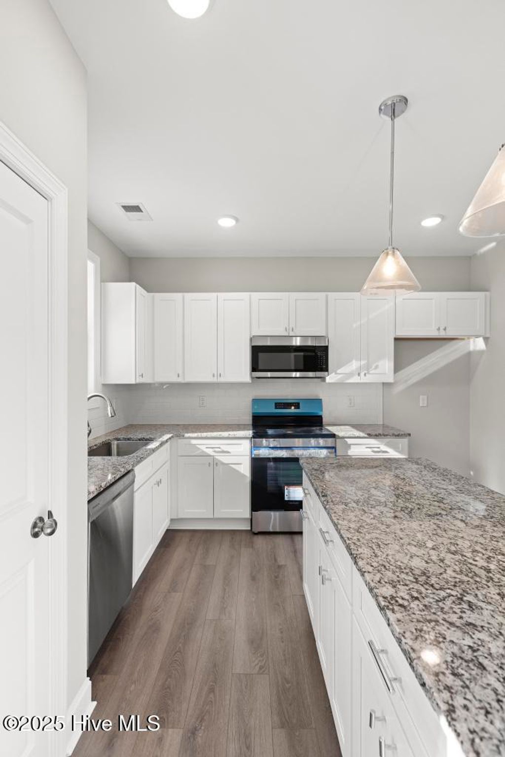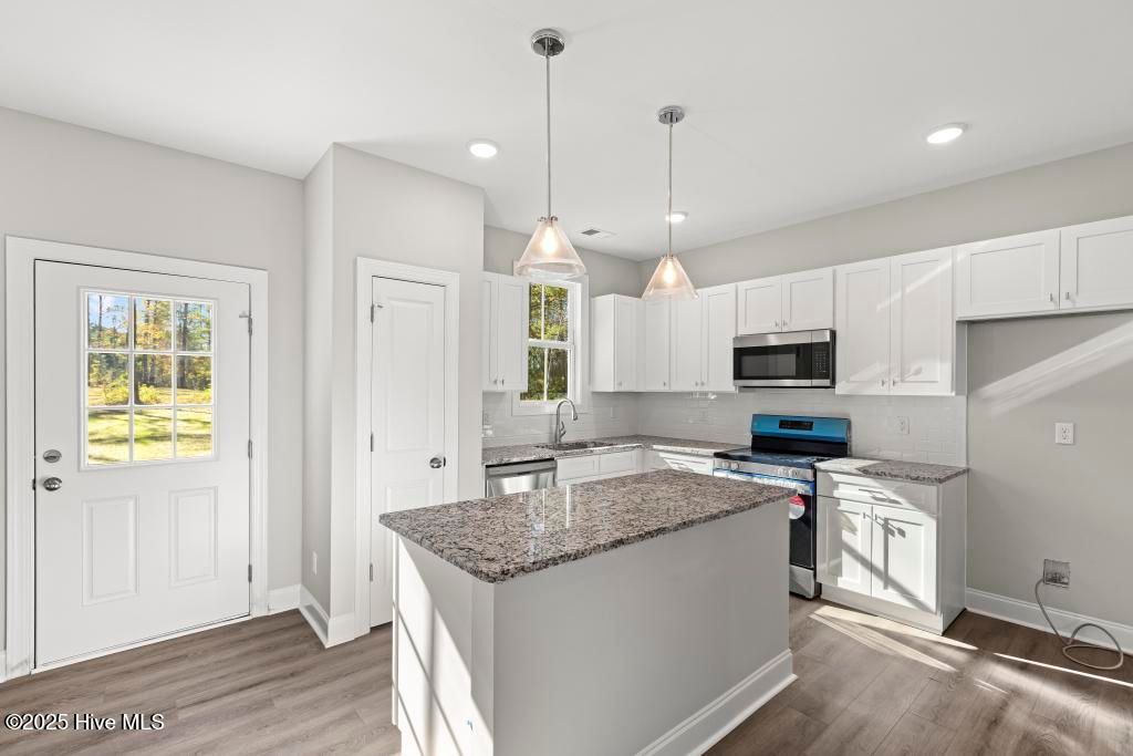 Move in Ready! Nestled in the charming new home community of Plum Point in Burgaw. Designed to cater to a variety of lifestyles, this 1,627 heated square-foot home with 3 bedrooms and 2.5 bathrooms sits on an expansive, wooded .57-acre lot. Offering a serene escape with the convenience of nearby amenities. Whether you are commuting to nearby Wilmington, enjoying local parks, or exploring historic downtown Burgaw, this location puts you within easy reach of it all. This community focuses on living in nature and enjoying outdoor living. The exterior of this home offers curb appeal, with a tasteful blend of modern and traditional architecture. A covered front porch welcomes you, offering the perfect spot to enjoy your morning coffee. The backyard is a standout feature, framed by mature trees that enhance privacy and offer plenty of shade. The half-acre-plus lot provides endless opportunities for outdoor activities, gardening, or even adding a custom deck, fire pit, or pool to suit your vision. Step inside to discover a thoughtfully designed floor plan that maximizes space. This 3 bedroom, 2.5 bathroom home offers a living area designed to cater to your every need, with open-concept living spaces. Natural light streams through large windows, creating a warm and inviting atmosphere. Kitchen offers an island with bar seating serves as the centerpiece, with granite countertops and stainless steel appliances. The adjoining formal dining area offers a comfortable space for family meals or dinner parties. All bedrooms are located on the second floor with 2 full bathrooms. There is also a finished bonus room over the garage which can serve as flex space or a game room. The wooded .57-acre lot is a rare find, offering the perfect setting for outdoor enthusiasts and those who value privacy. Whether you envision weekend barbecues, a play area for children, or simply a quiet place to unwind, the backyard provides endless possibilities. $5,000 use as you choose allowance offered.