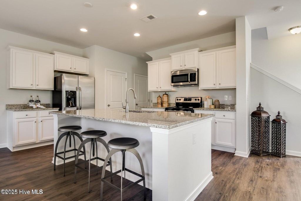 Welcome to the Pines at Blake Farm! The Aisle floorplan features a large open living and dining space. The open-concept family room, kitchen, and dining area feature stainless steel appliances, including a smooth-top range, dishwasher, and overhead microwave. The first floor also features a powder room for your convenience. The large second-floor primary suite features an ensuite bath with a double bowl vanity and a spacious walk-in closet. The second floor includes three secondary bedrooms, walk-in laundry room, and a versatile upstairs living space. Home Is Connected® Smart Home Technology is included in your new home and comes with an industry-leading suite of smart home products including touchscreen interface, video doorbell, front door light, z-wave t-stat, & door lock all controlled by included your smartphone app with voice! Blake Farm is conveniently located near Highway 17 and I40, offering easy access to downtown Wilmington, Raleigh, Porters Neck, and Hampstead. Residents can quickly reach Mayfaire, grocery stores, and hospitals within a short drive. The amenity center will include a swimming pool, multi-sport court, and fire pit, ensuring a well-rounded and enjoyable living experience. The photos you see here are for illustration purposes only, interior and exterior features, options, colors and selections will vary from the homes as built. Estimated completion Winter 2025.