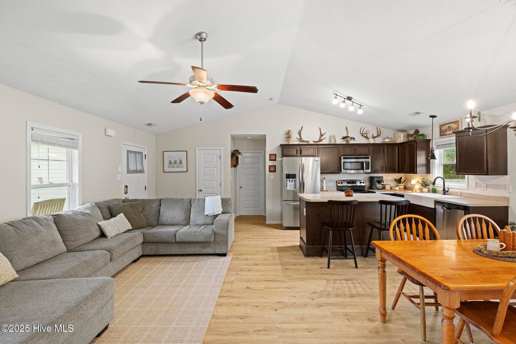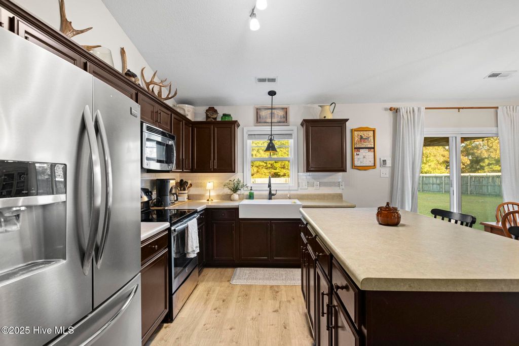 Fall in Love with This Coastal Farmhouse! Welcome home to this warm and inviting 3-bedroom, 2-bath beauty sitting on over half an acre of peaceful country charm. Step inside and feel right at home with the open floor plan, vaulted ceilings, and cozy living space "” perfect for gathering with family or hosting fall get-togethers. The kitchen is the heart of this home, featuring rich cabinetry, a farmhouse sink, and a spacious island that's just waiting for pumpkin pies and hot cider. The primary suite offers a comfortable retreat with a walk-in closet, while the two additional bedrooms give you plenty of space for guests or hobbies. Step out back and soak up the crisp Carolina air "” there's room to garden, add a firepit, or simply enjoy the golden sunsets from your own backyard. Located just minutes from Camp Lejeune, area beaches, and all things Eastern NC, this move-in ready home blends country comfort with a touch of coastal living.