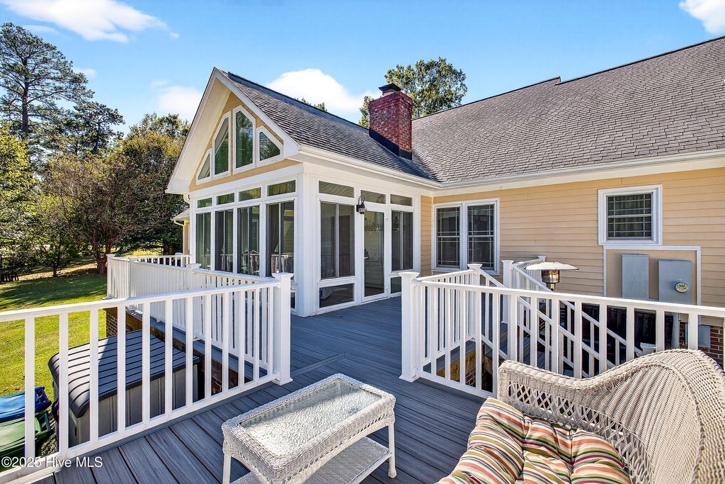 Step into your own private oasis with this beautiful 4-bedroom, 3-bathroom home situated on a sprawling 1.57-acre lot. Whether you're entertaining guests or enjoying a peaceful retreat, this property offers the perfect blend of space and comfort. A standout feature of the home is the stunning sunroom, which offers abundant natural light and a peaceful view of the surrounding property. Additionally, the home includes a generously sized bonus room, perfect for use as a home office, guest suite, or recreational area. The living room is very spacious & conveniently flows into the kitchen. The focal point of this room is the stunning gas fireplace surrounded by white-washed brick. This is an ideal location for cozy family gatherings! At the rear of the home, a low-maintenance Trex deck overlooks the in-ground pool, which reaches a depth of nine feet and includes a diving board. A fully equipped pool house adds functionality and convenience for outdoor gatherings. With its blend of classic charm and modern touches, this property delivers a truly exceptional living experience in a serene setting.