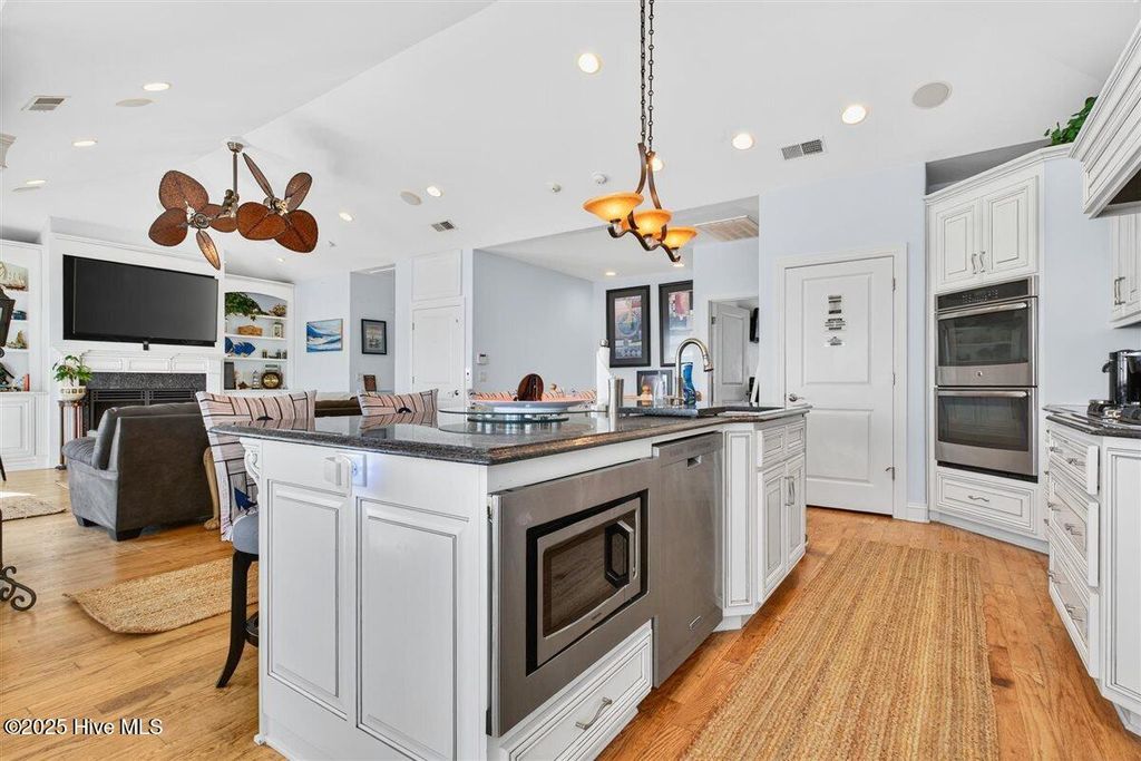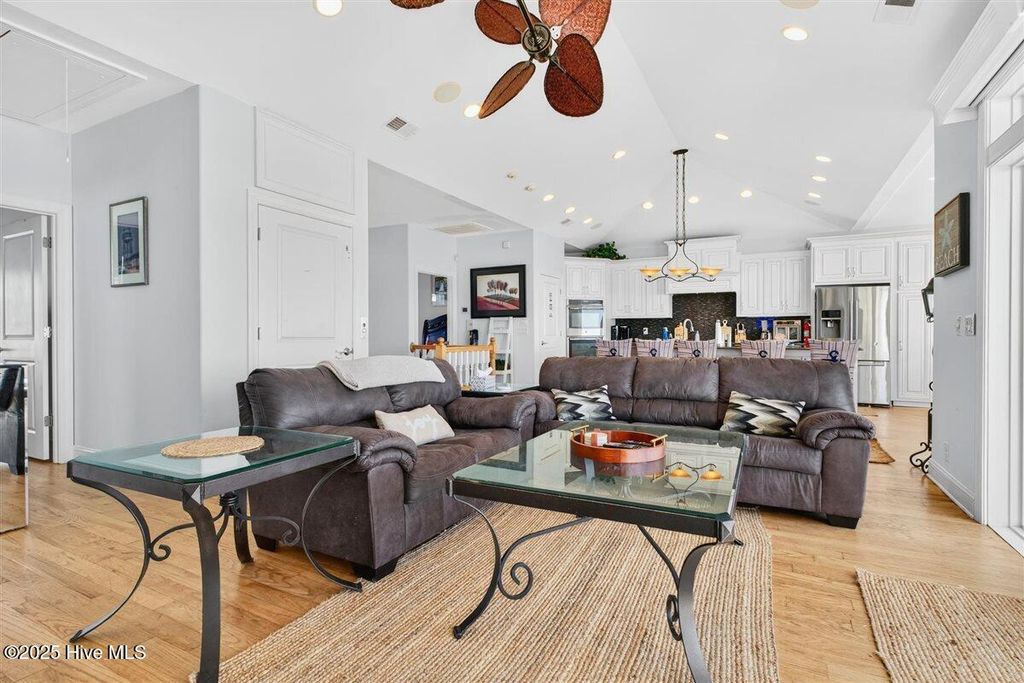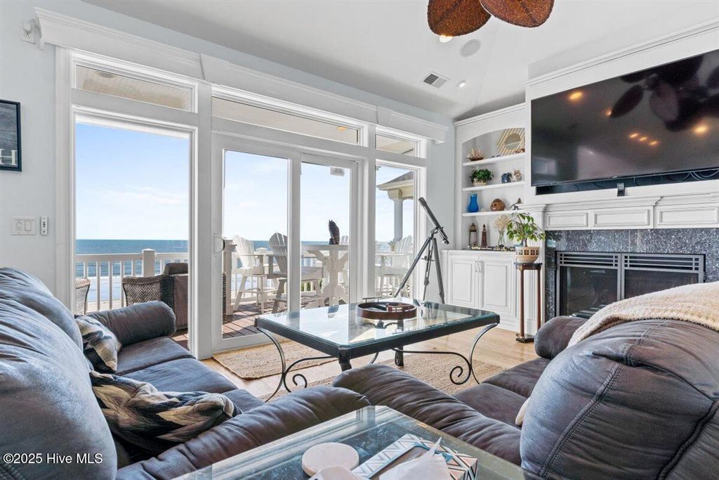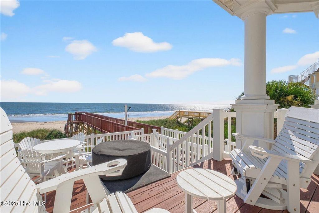 7 Coggleshall Drive is located in West Ocean Palms, a private, gated community located at the west end of Ocean Isle Beach. This FURNISHED, OCEAN FRONT home, built by Ernie Crews, one of Brunswick County's finest builders, utilizes a REVERSE floor plan to capture the beauty of the strand, ocean, and sound. With approximately 3000 heated square feet on the first and second floors and an additional 600+ heated but 'non-conforming' area on the ground level, this popular beach house features 6 bedrooms , 6 full baths, and 2 half baths. With hardwood floors, a 3 stop elevator, a heated pool, an outdoor kitchen with Wilmington grill, and mounted TVs and decorative fans in all rooms, this large, custom built home is extra special. The first floor hosts the primary bedroom with expansive ocean views, a private deck, fireplace, 55'' TV, an oversized walk-in, tiled shower, ''lighted'' stained glass double sinks, wet bar, and mini-fridge. The first floor theater room includes a 70'' TV mounted over the fireplace, comfortable recliners, and built-in cabinets. A powder room located off the theater room and two additional bedrooms with private baths complete the first floor. The second floor opens up to a spacious great room, dining space, and designer kitchen with ocean views from all areas. A 70'' mounted TV over the great room fireplace is also surrounded by custom built cabinetry. Kitchen appliances include the gas stove top, double ovens (one of which is convection), dishwasher, refrigerator, and trash compactor. The dining area overlooking the ocean has seating for 10 at the table. All of the counters throughout the house have grade 4 granite, including the 10' island kitchen bar which seats 5. With washers and dryer on the first and second floors, 2 tank less water heaters, and numerous games in the recreation room (i.e., a pool table, air hockey, darts, basketball, pinball, etc.), 7 Coggleshall is a popular rental destination grossing $175,000 - $200,000.