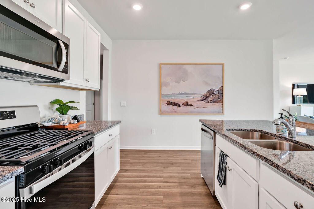 The Cali is our most popular one-story, 4-bedroom home, featuring an open-concept living area that leads to a kitchen equipped with Stainless Steel Appliances, including a smooth-top electric range, microwave, and dishwasher. As you enter, you'll find three bedrooms with a shared bathroom, while the Primary Bedroom, off the living area, offers a private ensuite bathroom. This home combines a functional layout with quality finishes, making it a great choice for those seeking a modern ranch-style design. Enjoy the covered porch perfect for entertaining and enjoying the Carolina evenings. Home Is Connected® Smart Home Technology is included in your new home and comes with an industry-leading suite of smart home products including touchscreen interface, video doorbell, front door light, z-wave t-stat, & door lock all controlled by smartphone app! Located just south of Wilmington with easy access to I-140 & Hwy. 17, you'll love the short commute to all the areas recreation and attractions. Love shopping and dining? You'll find all the popular shops and local eateries just a short drive to the heart of Leland & downtown Wilmington. Homeowners will enjoy a pavilion with resort style swimming pool, hot tub, fire pit, multi-game sport court, sand volleyball, and recreation field. Come see this brand new, Brunswick County new home community!